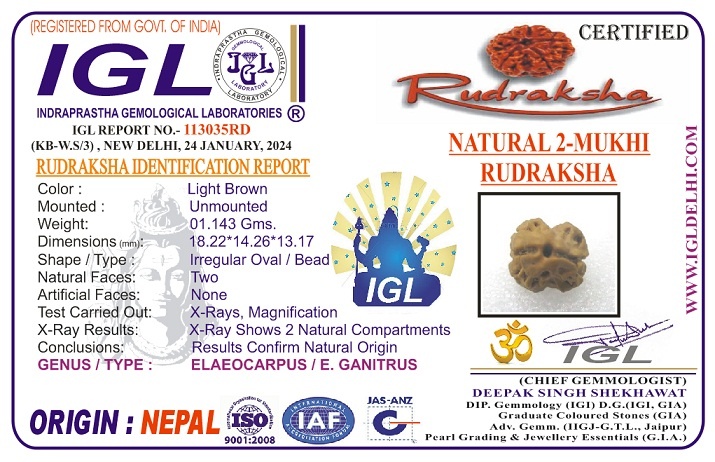 2 mukhi Rudraksha heals the Soul and connect the wearer to his soul destiny. Bestows self confidence, emotional stability, inner bliss and enhances relationships.
