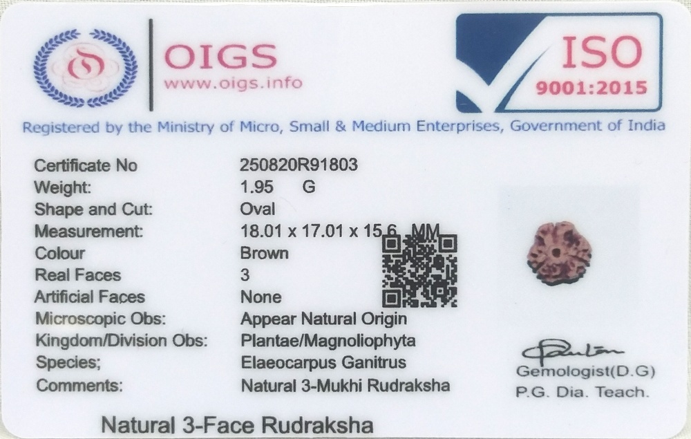 Product Name : 3 Mukhi Rudraksha with Three Complete Seeds – 18.01 mm – Nepal