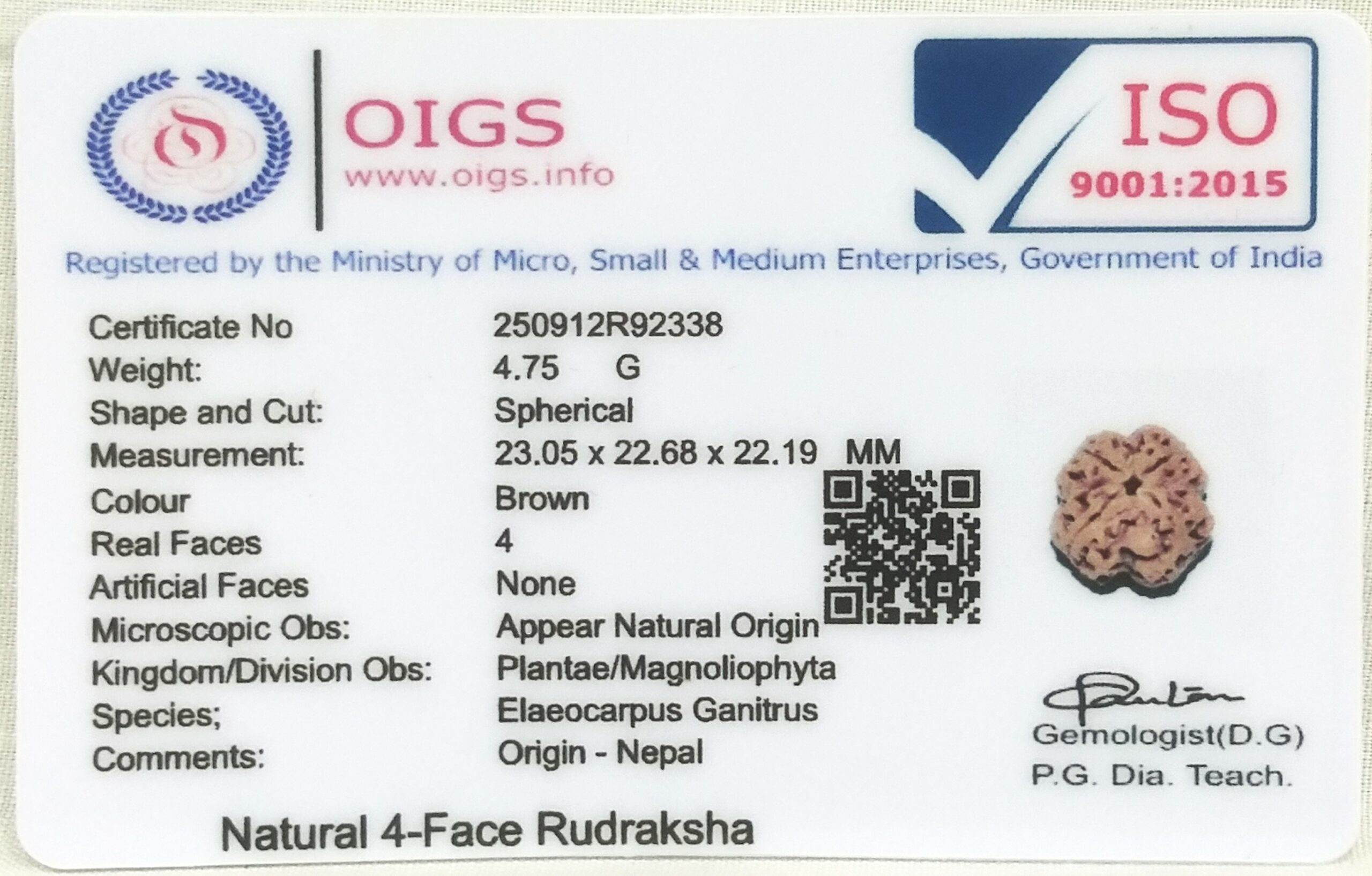 Product Name : Collector 4 Mukhi Rudraksha with 4 complete seeds – 23.05 mmÂ