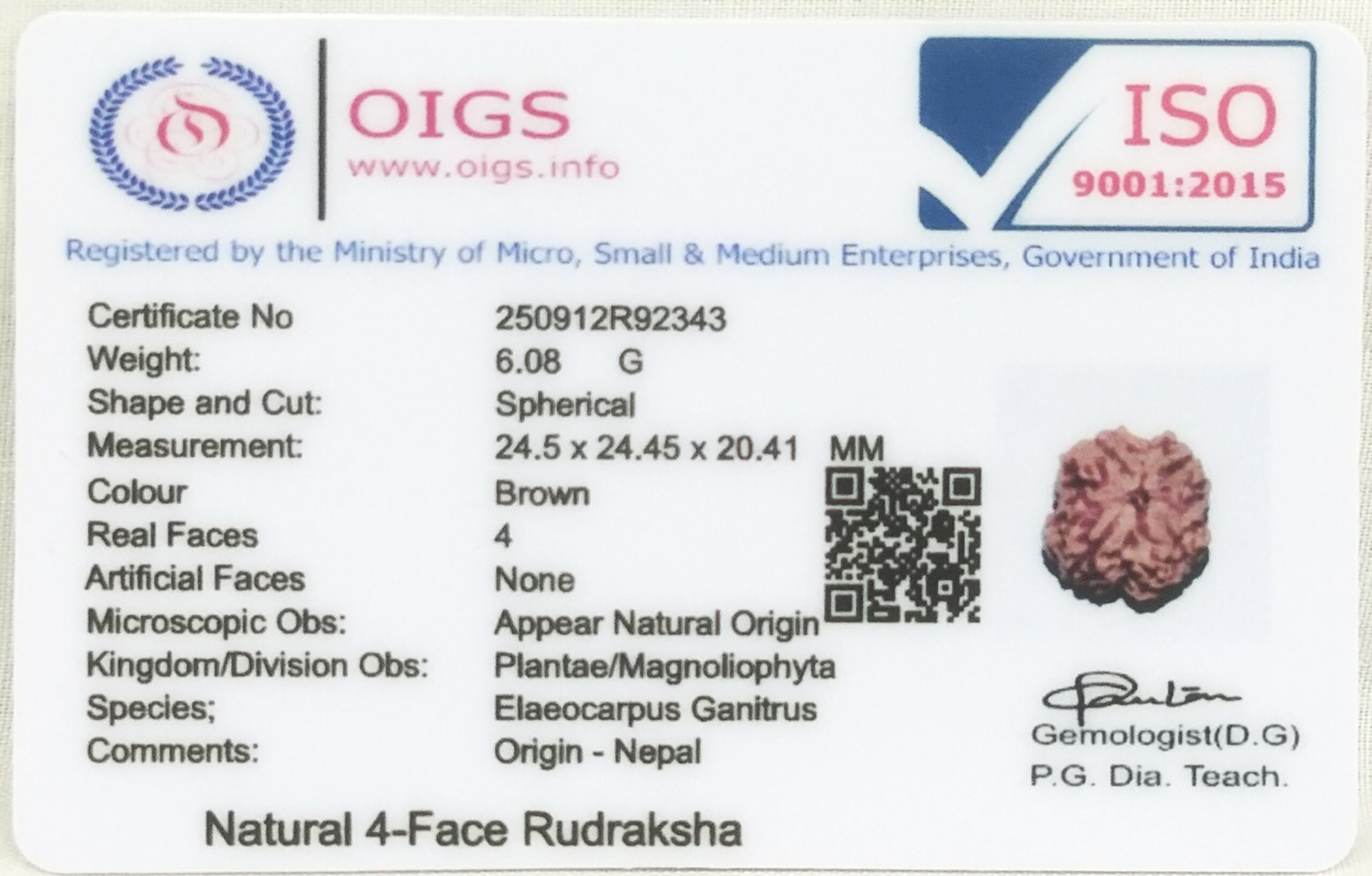 Four Face Rudraksha Of Nepal with 4 complete seeds – Lab Certified