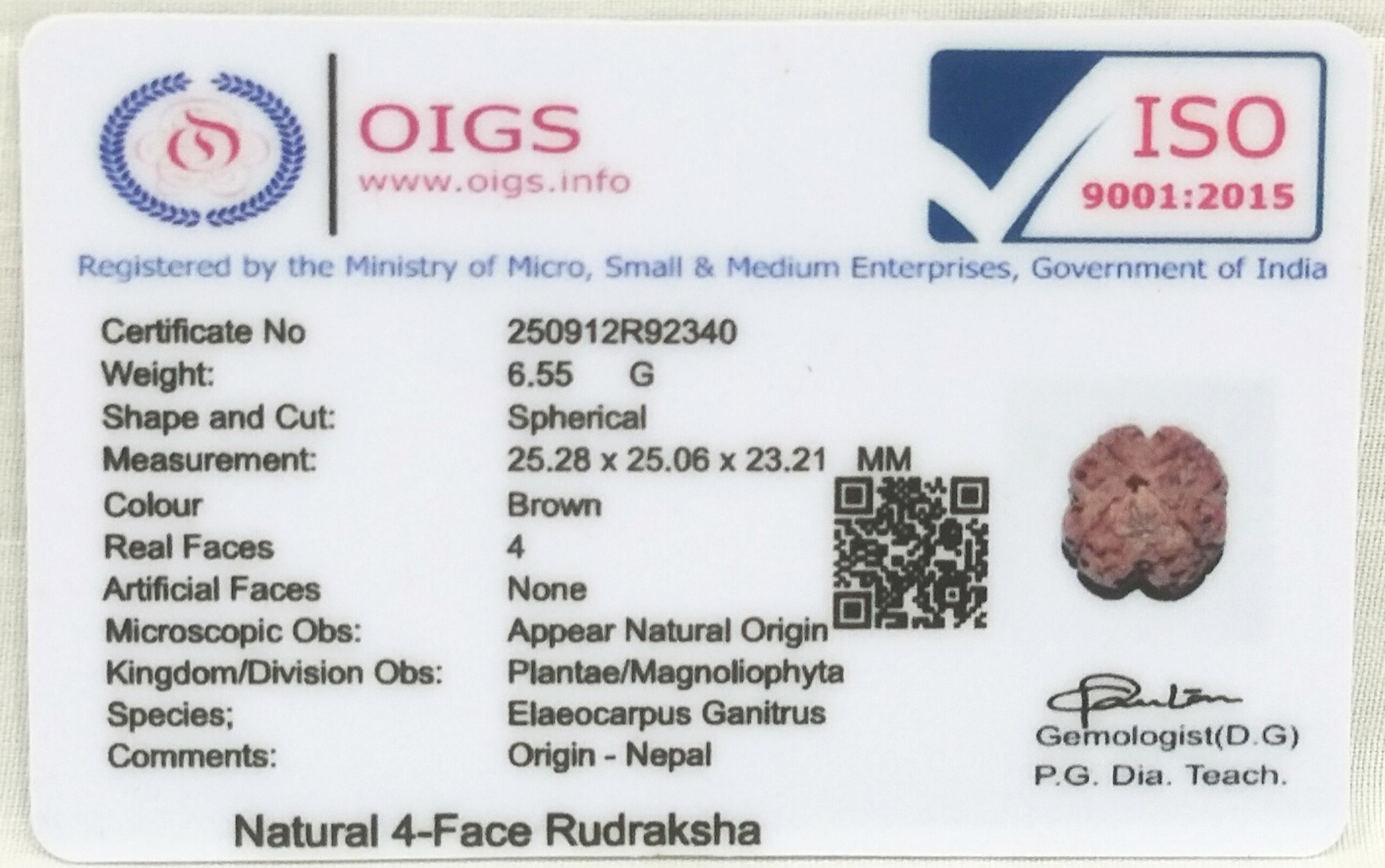 Four Face Rudraksha Of Nepal with 4 complete seeds – Lab Certified