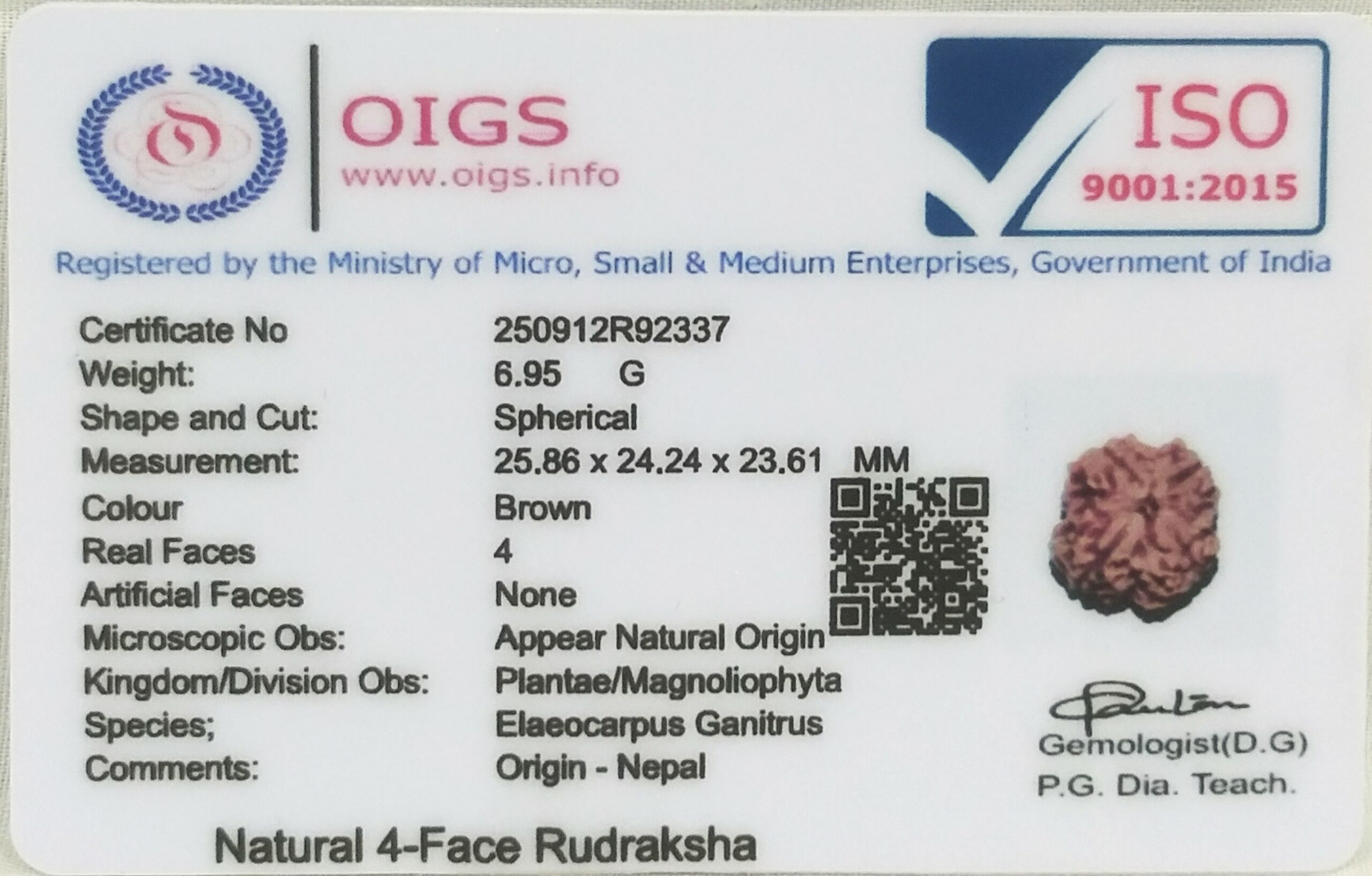Product Name : Collector 4 Mukhi Rudraksha with 4 complete seeds – 25.86 mmÂ