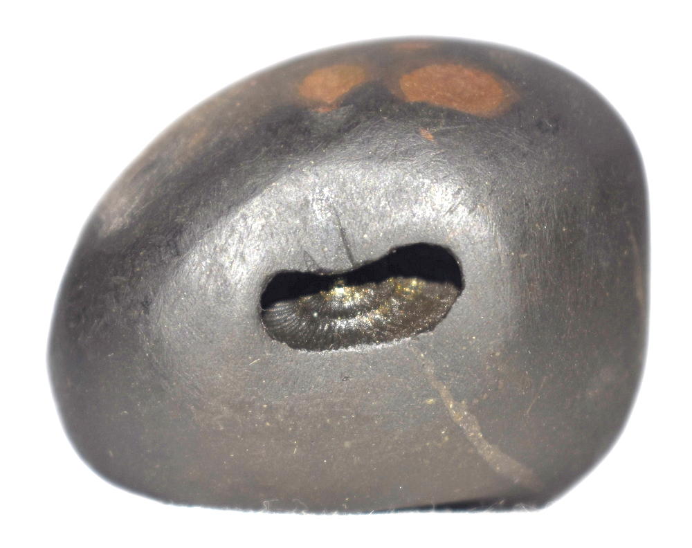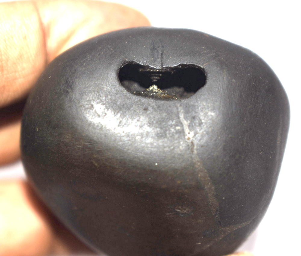 Shaligram having red, white or black color;small size;elevated back;rosary sign;1 opening – 2 circulars , is known as Dattatreya Shaligram