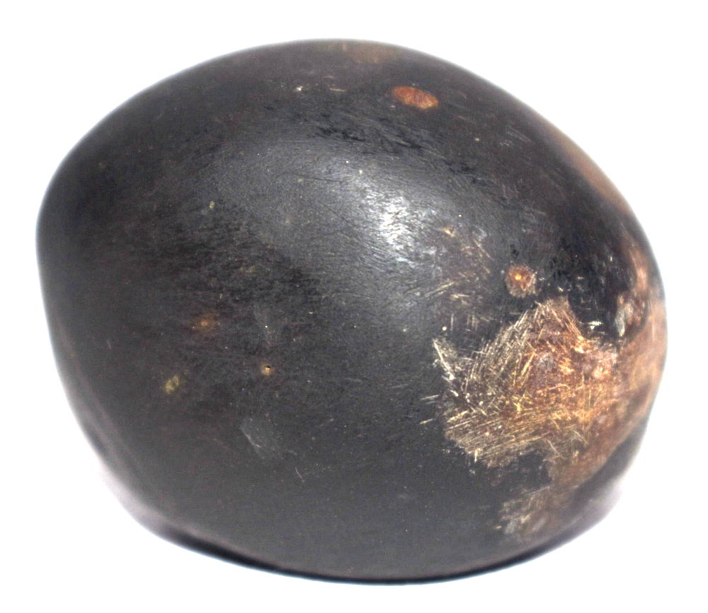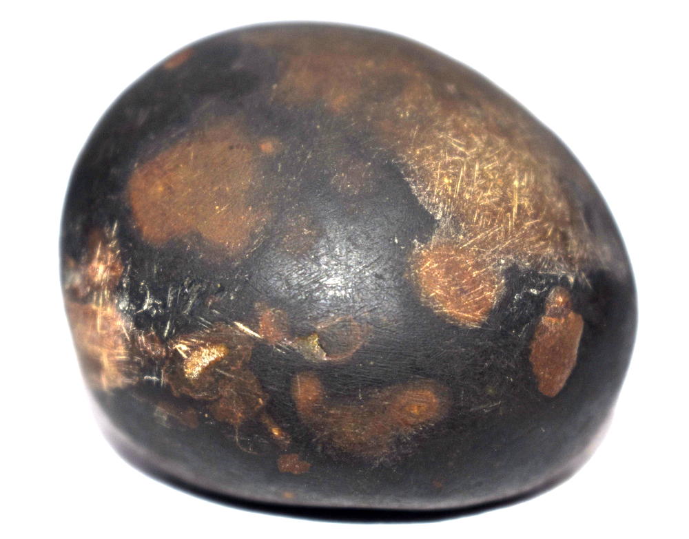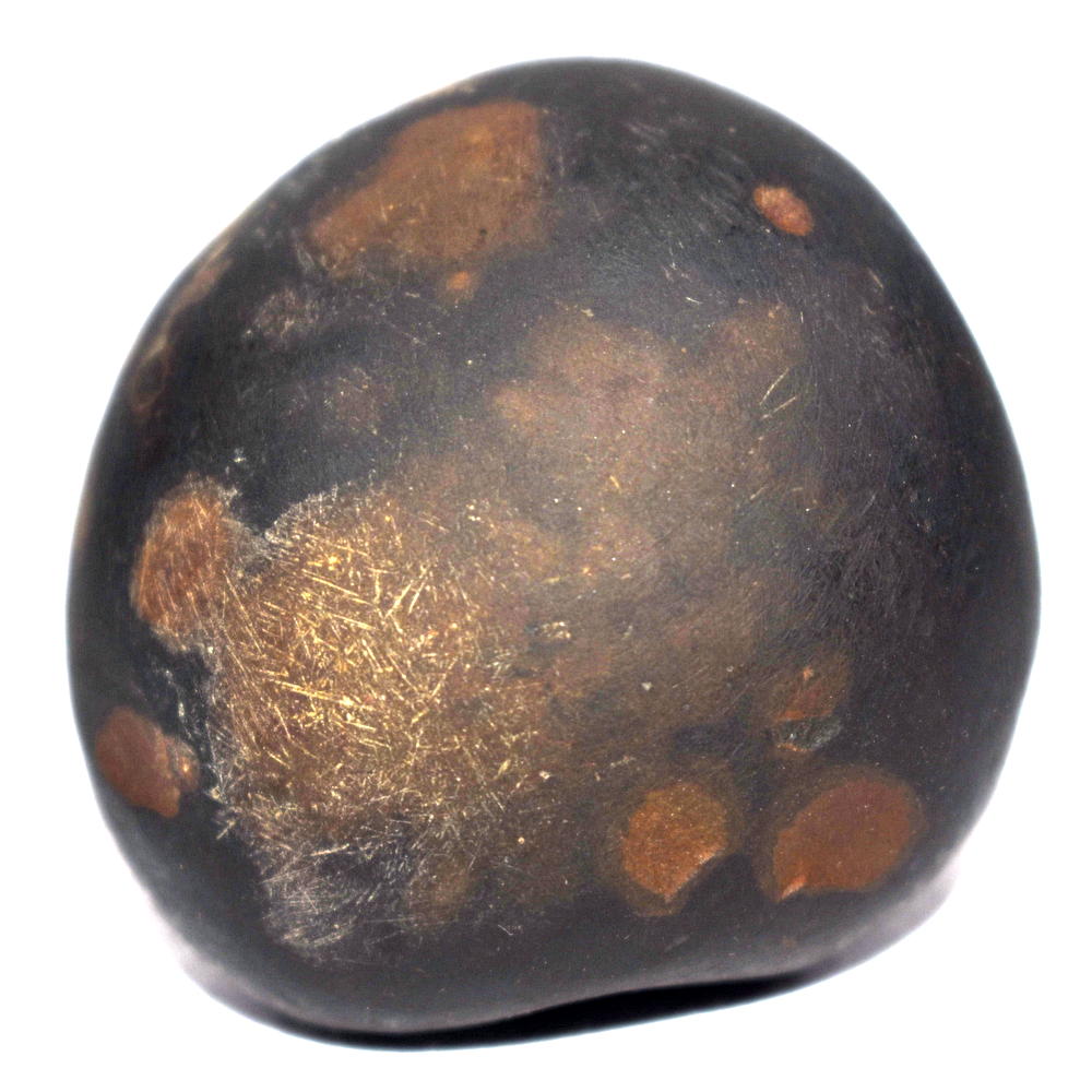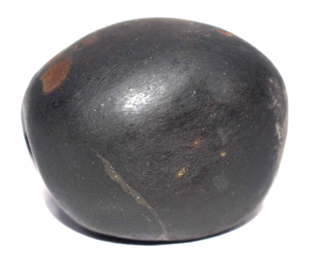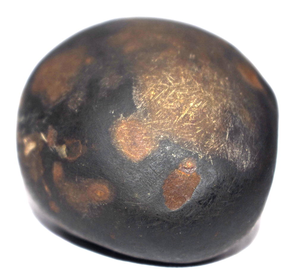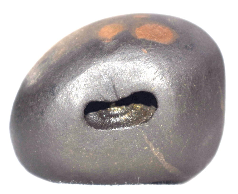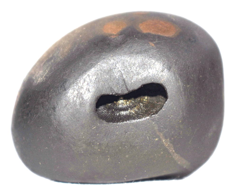 Smooth and Black color with red color spots and dots on body , single opening having 2 clear chakras with golden color spots , clear mark of rosary
