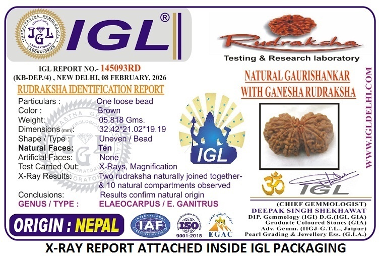 Gowri Shankar Ganesha Rudraksha –10 Mukhi – Nepal – IGL Certified