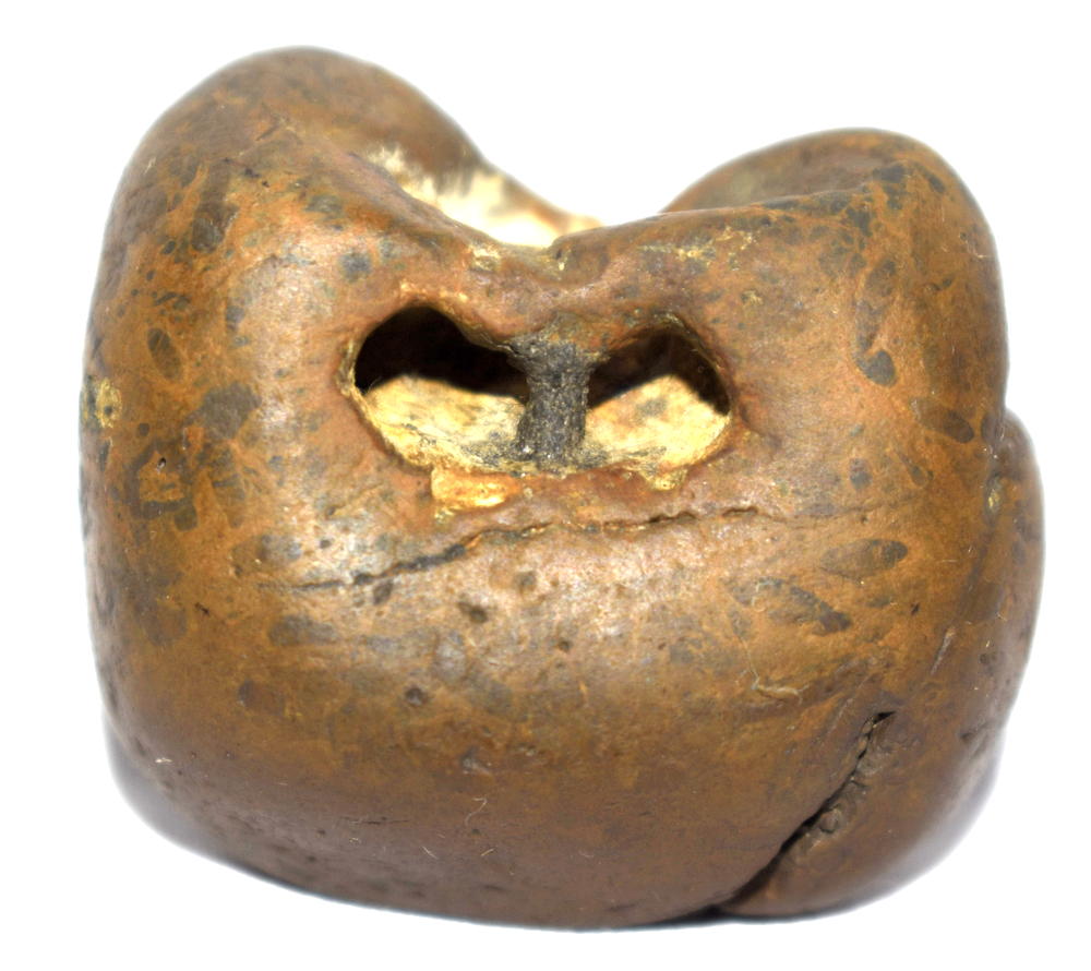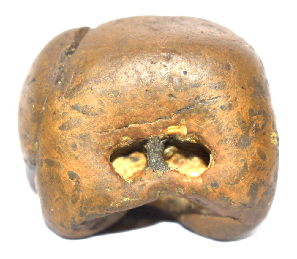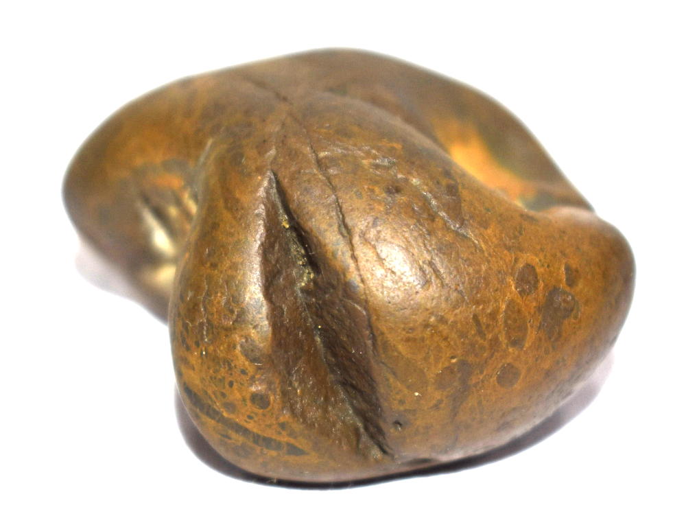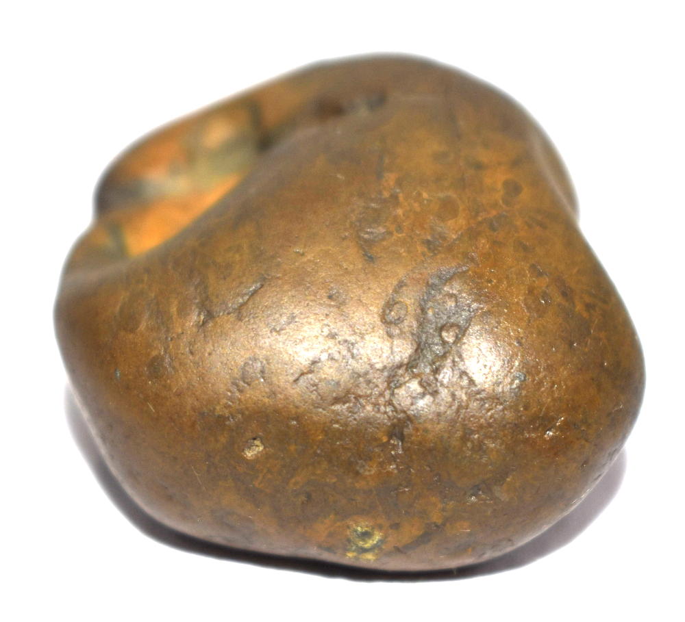 Honey color smooth body , single opening having 2 clear chakras , mark of dots .