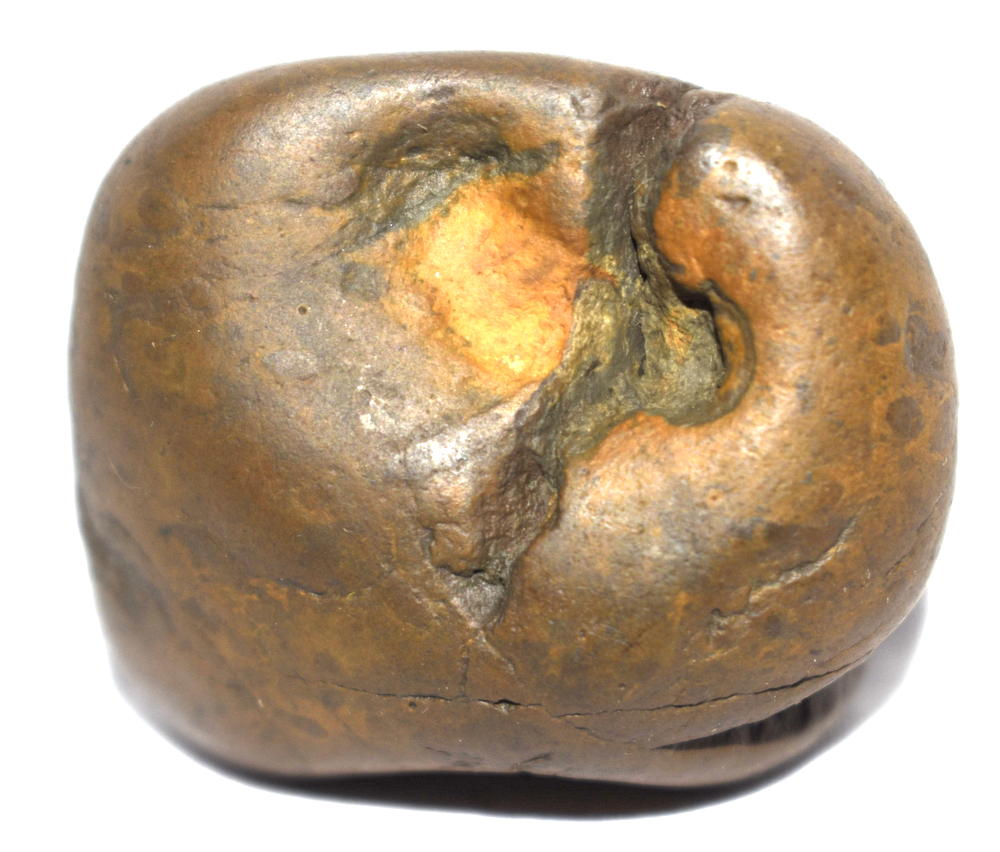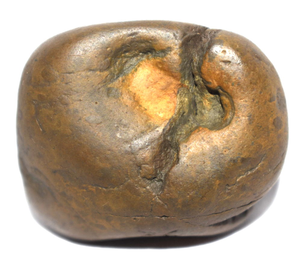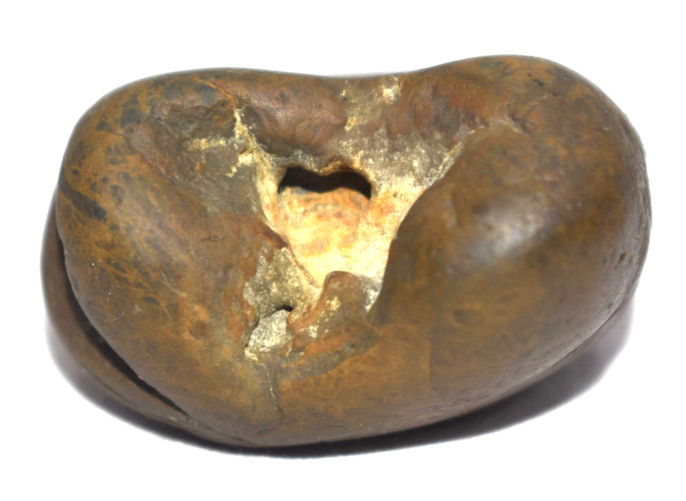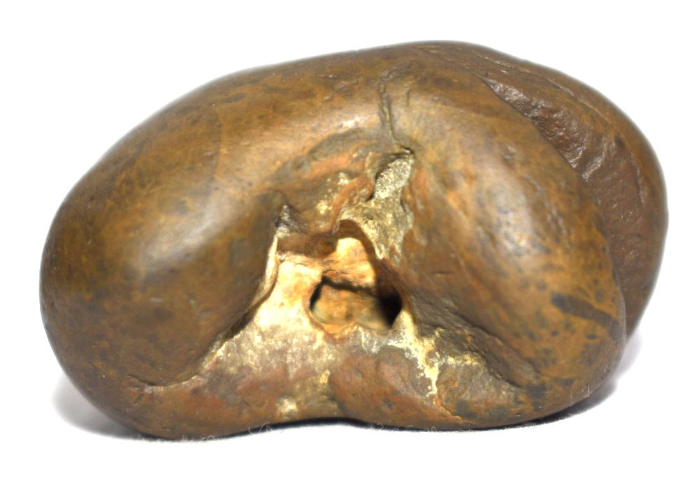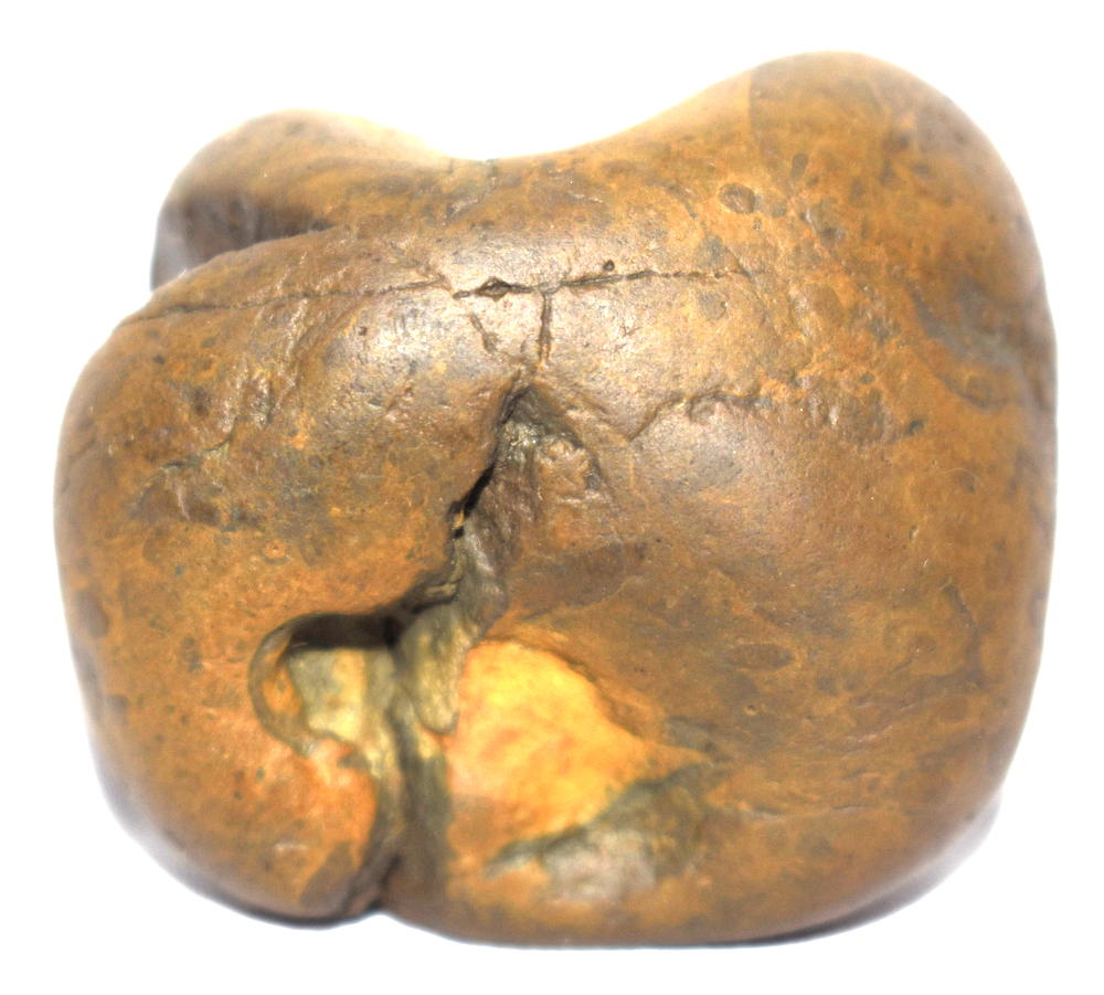 Honey color smooth body , single opening having 2 clear chakras , mark of dots .