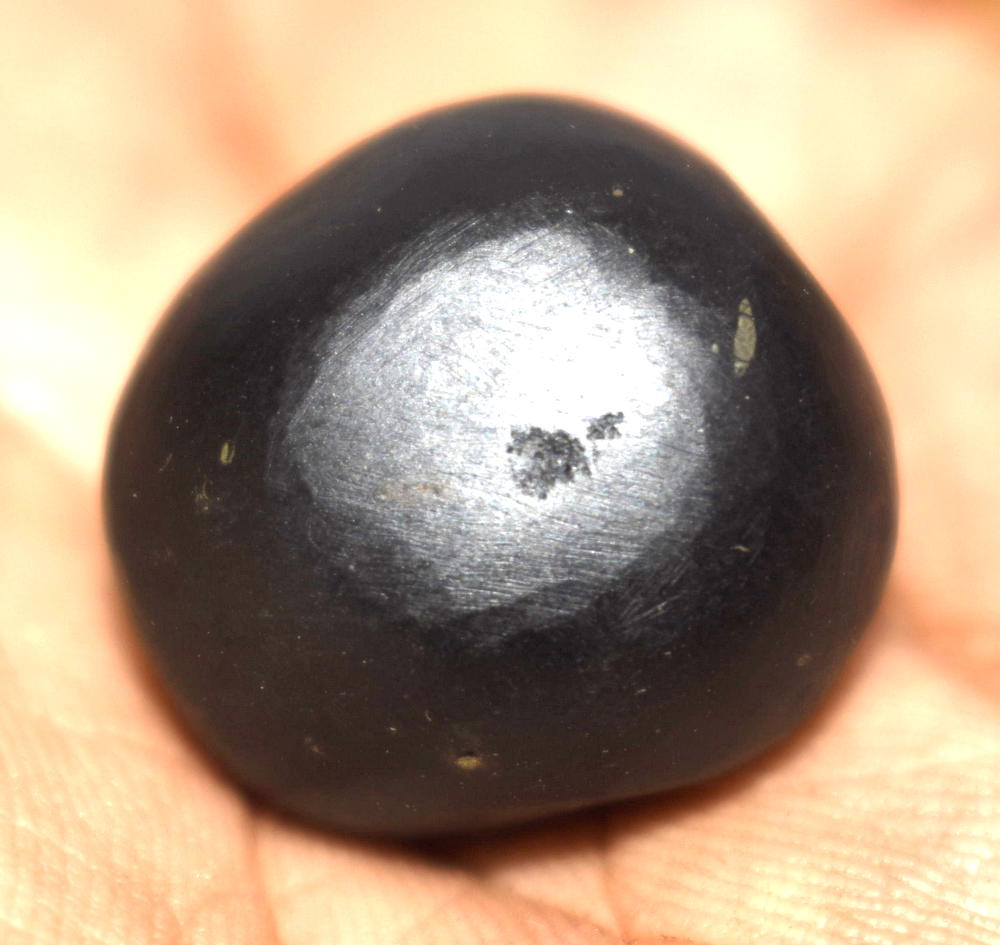 Shaligram having linseed flower color; dots;yellow color;bow, arrow and axe; 1 opening – 2 chakras is known as “AtaslPushpa ParashuRama Shaligram”