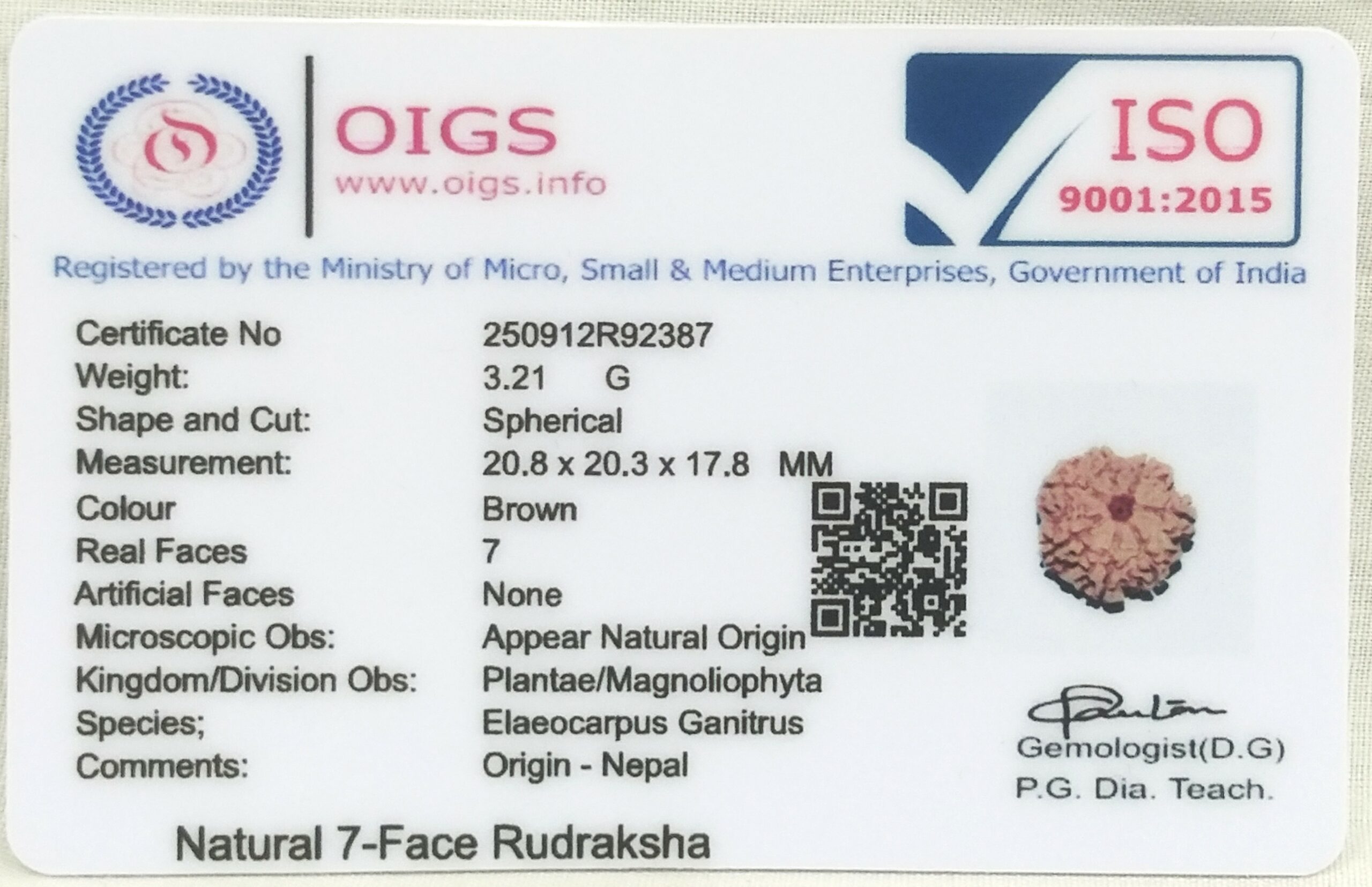 Seven Face Rudraksha With Complete seven Seeds – Nepal – Lab Certified