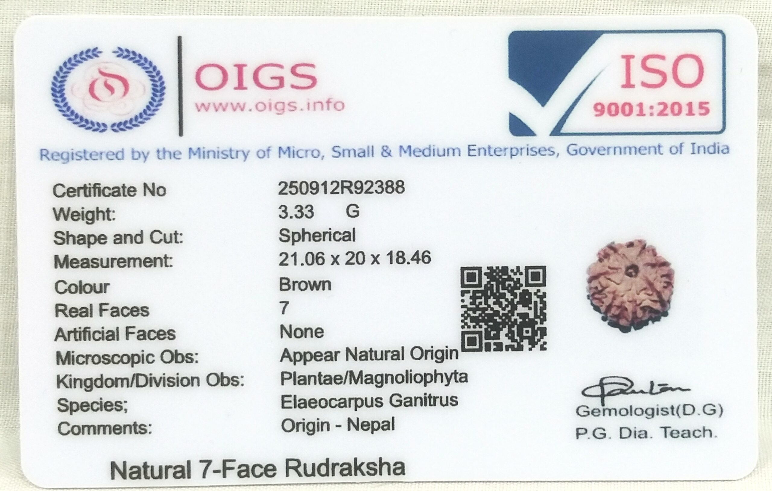 Product Name : Rare 7 Mukhi Rudraksha with Seven Complete Seeds – 21.06 mm – Nepal