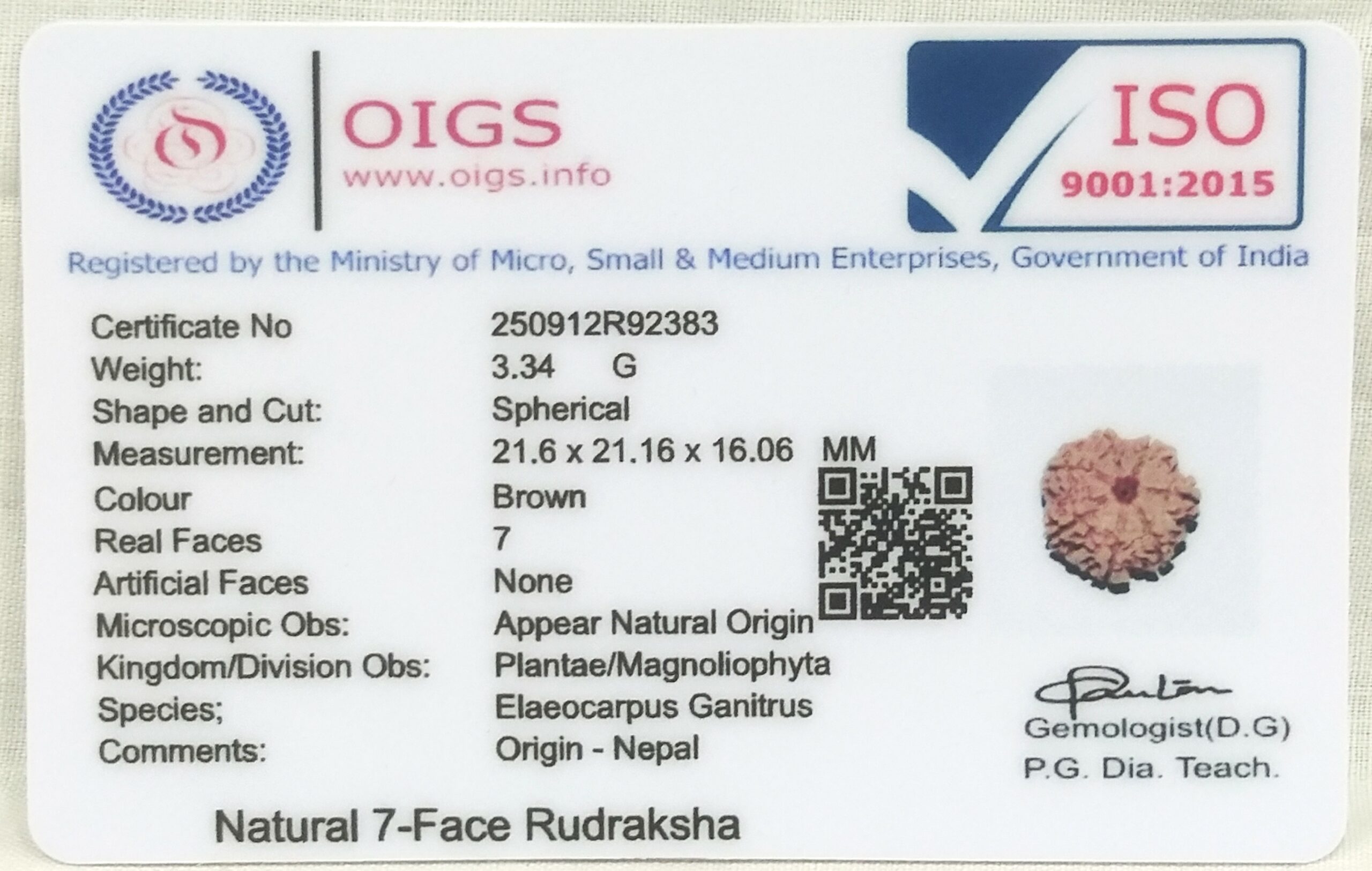 Seven Face Rudraksha With Complete seven Seeds – Nepal – Lab Certified