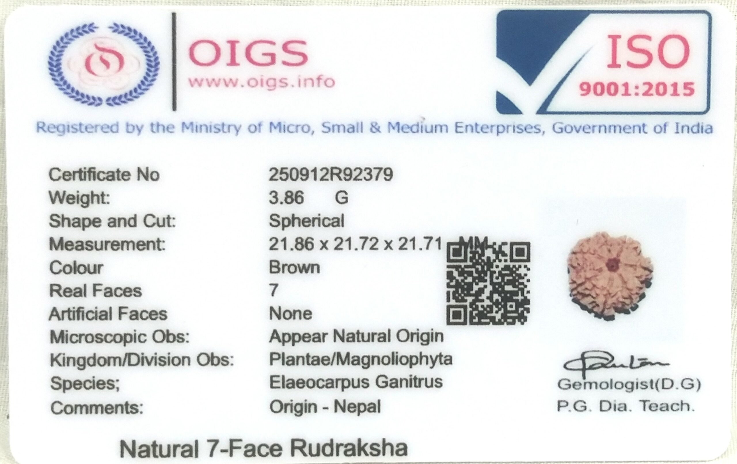 Product Name : Rare 7 Mukhi Rudraksha with Seven Complete Seeds – 21.86 mm – Nepal