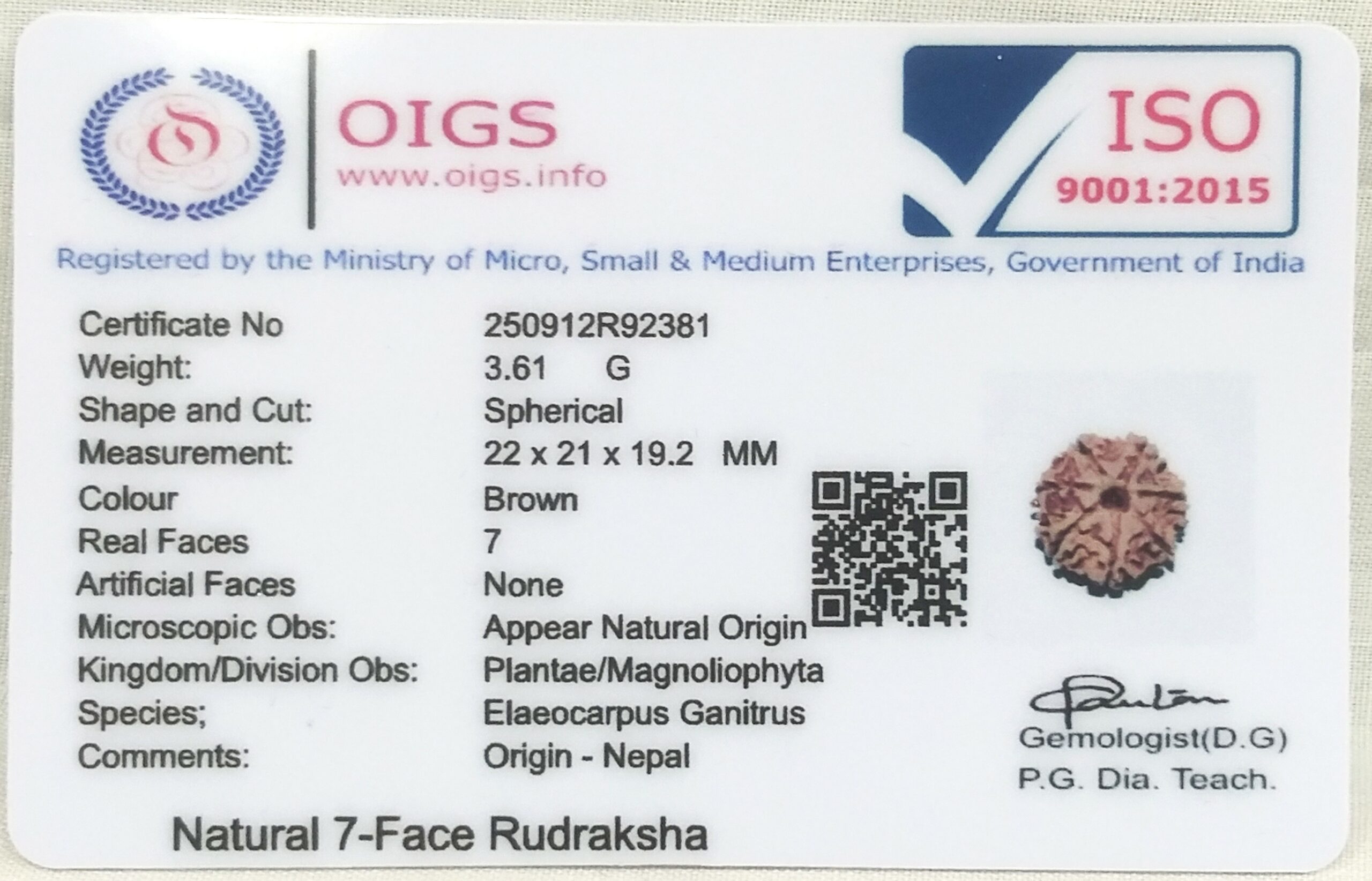 Product Name : Rare 7 Mukhi Rudraksha with Seven Complete Seeds – 22 mm – Nepal