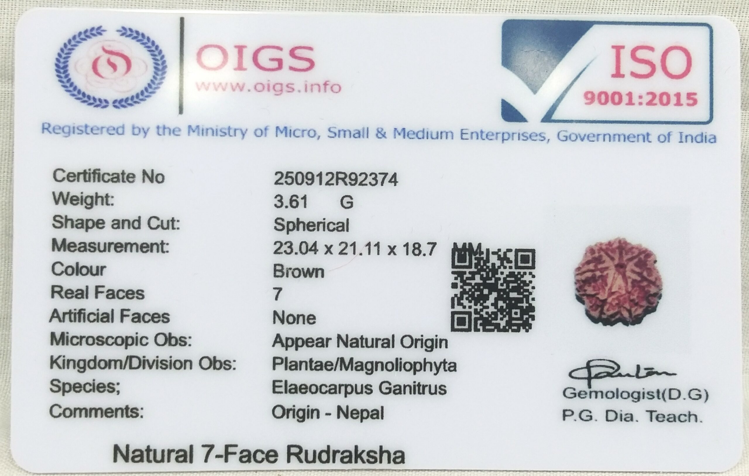 Product Name : Rare 7 Mukhi Rudraksha with Seven Complete Seeds – 23.04 mm – Nepal