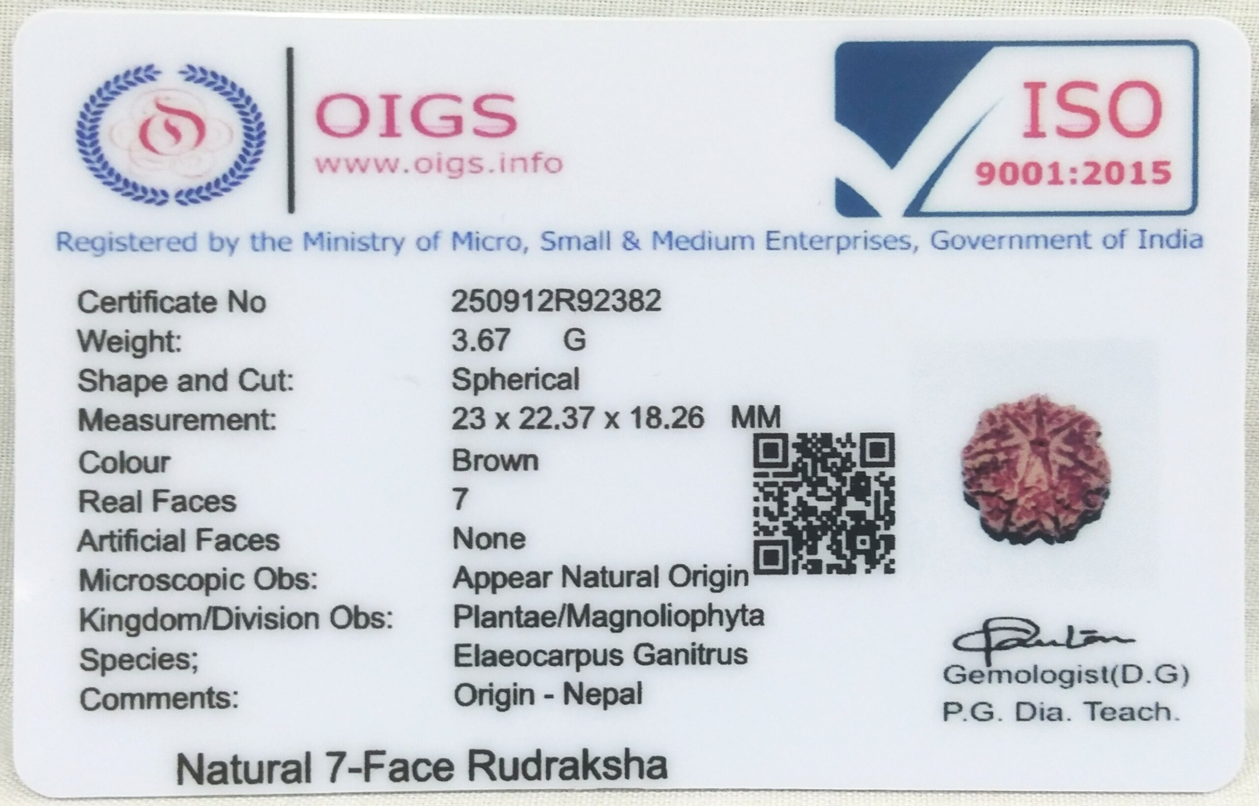 Product Name : Rare 7 Mukhi Rudraksha with Seven Complete Seeds – 23 mm – Nepal