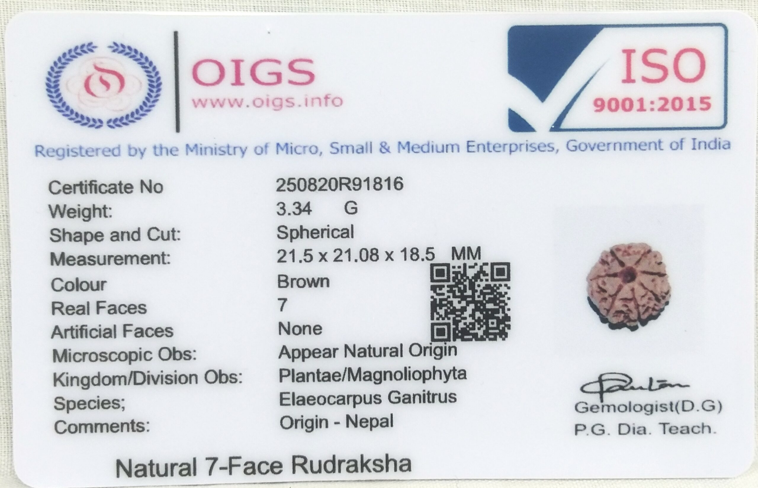 Seven Face Rudraksha With Complete seven Seeds – Nepal – Lab Certified