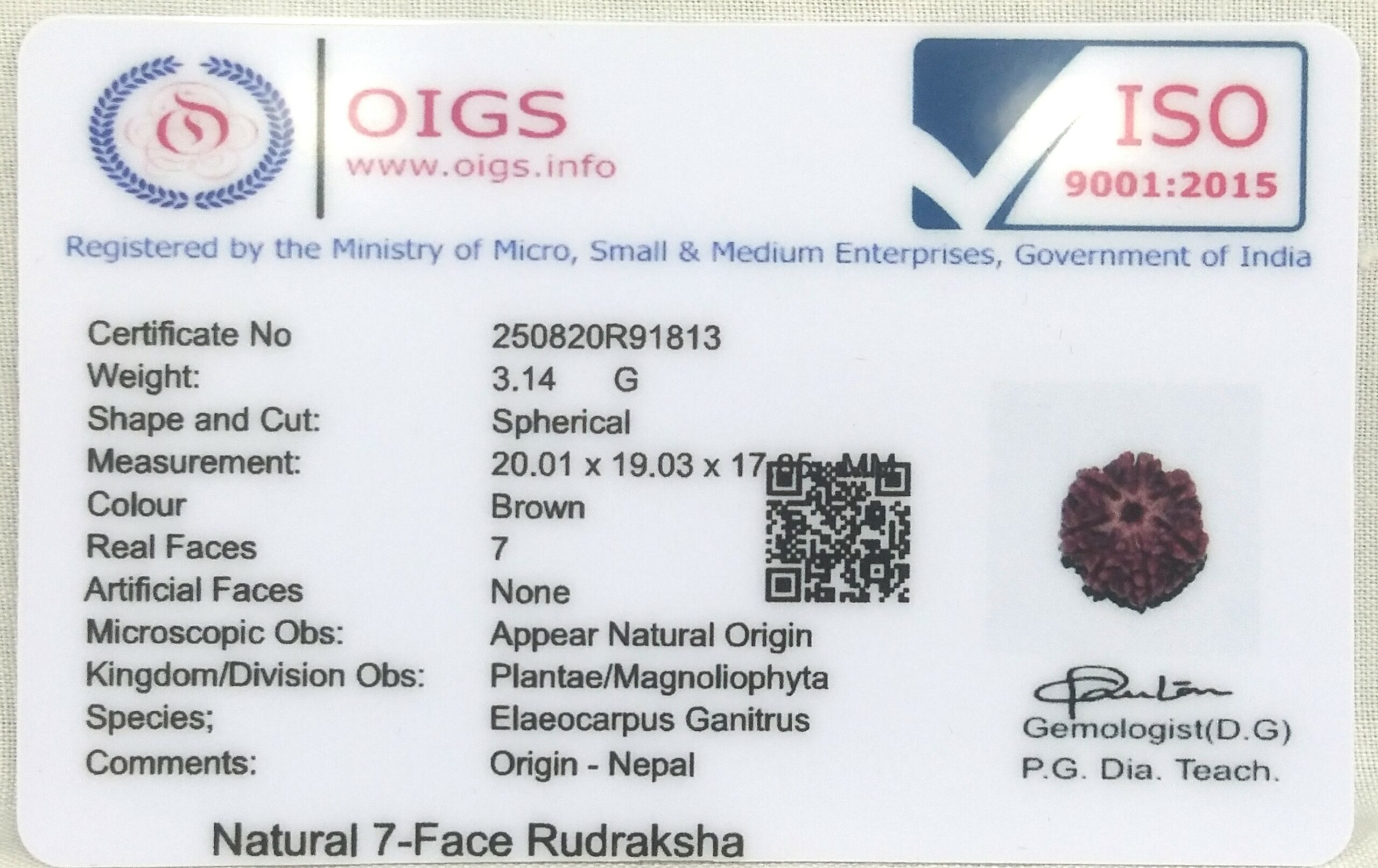 Seven Face Rudraksha With Complete seven Seeds – Nepal – Lab Certified