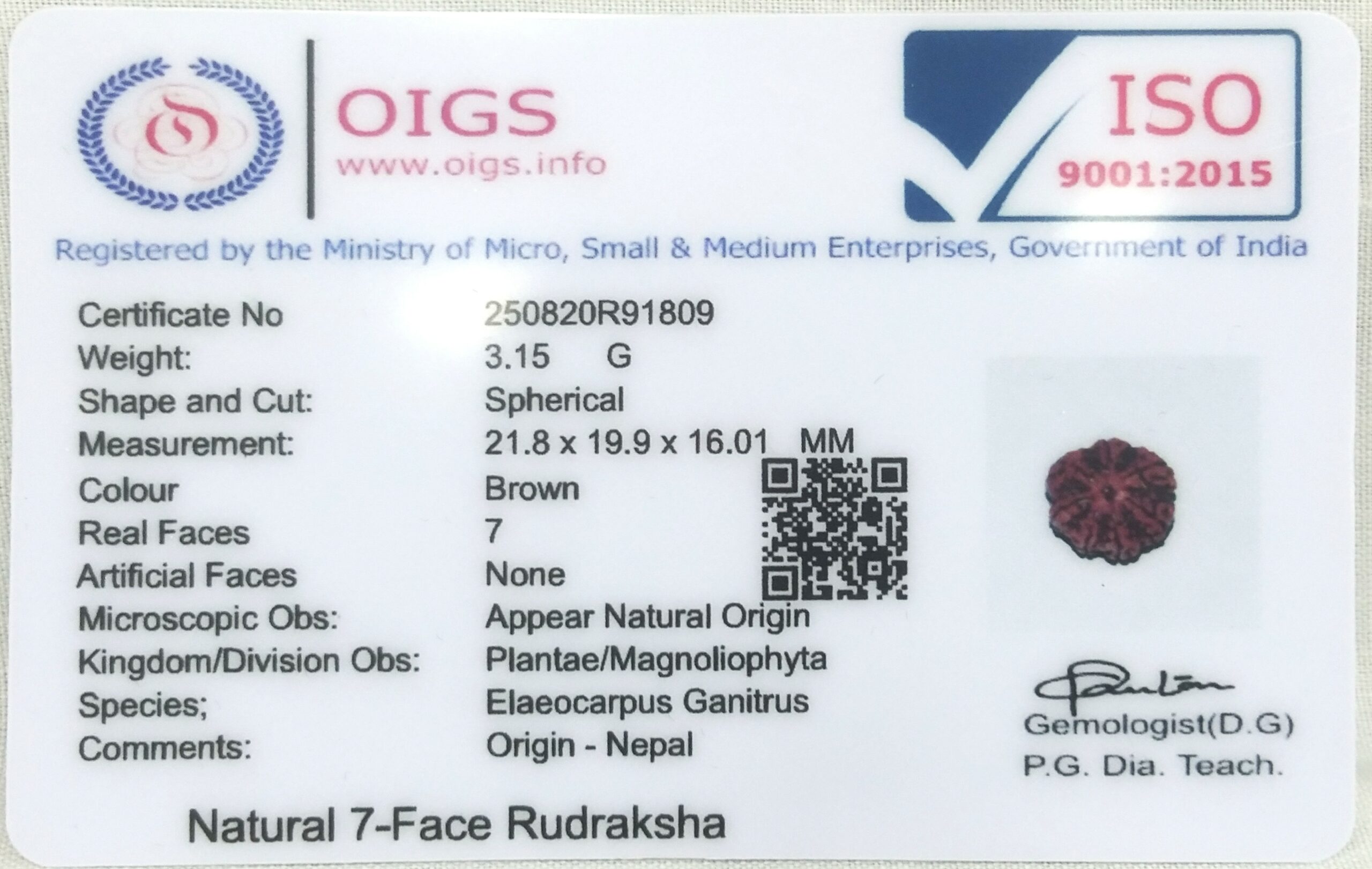 Seven Face Rudraksha With Complete seven Seeds – Nepal – Lab Certified