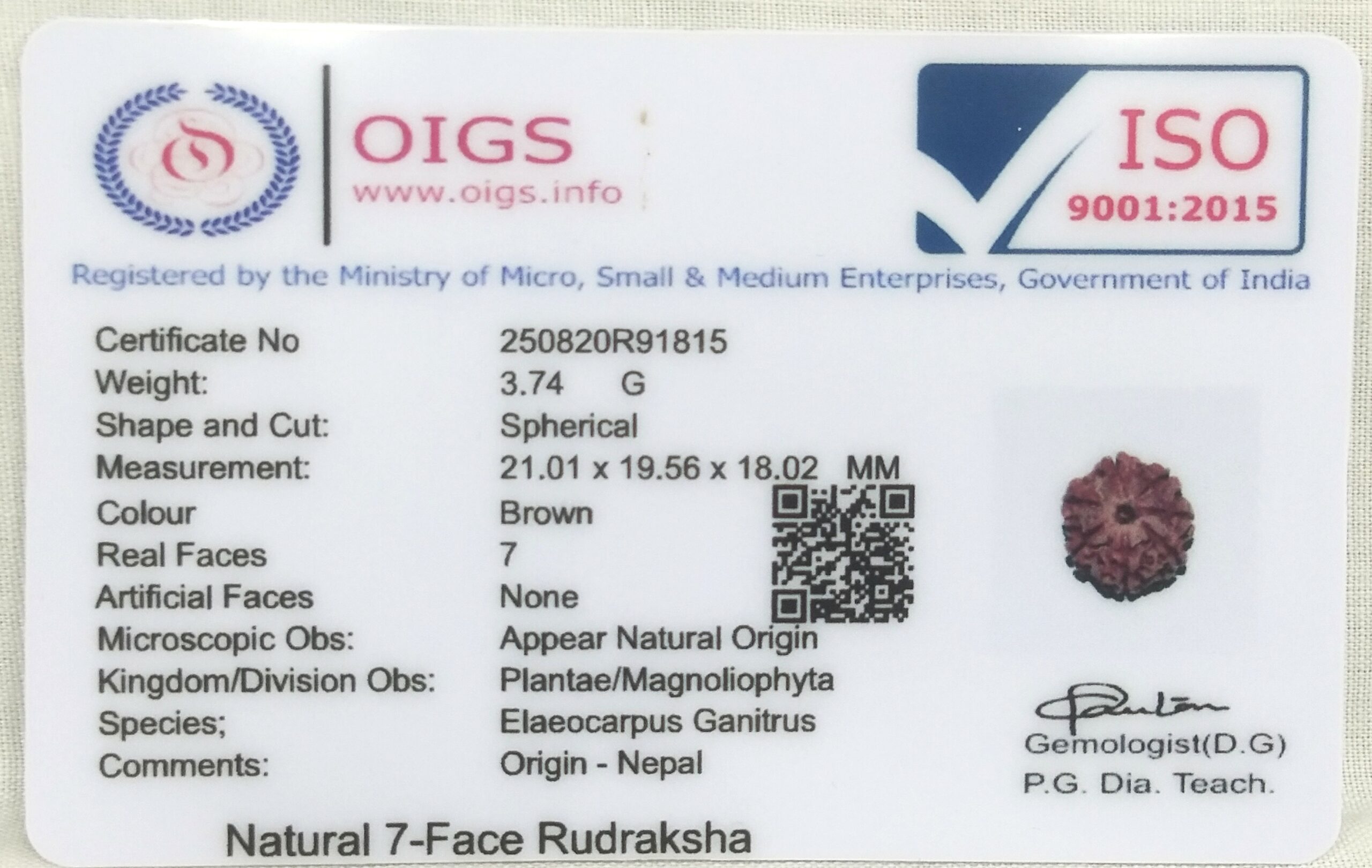 Product Name : Rare 7 Mukhi Rudraksha with Seven Complete Seeds – Nepal