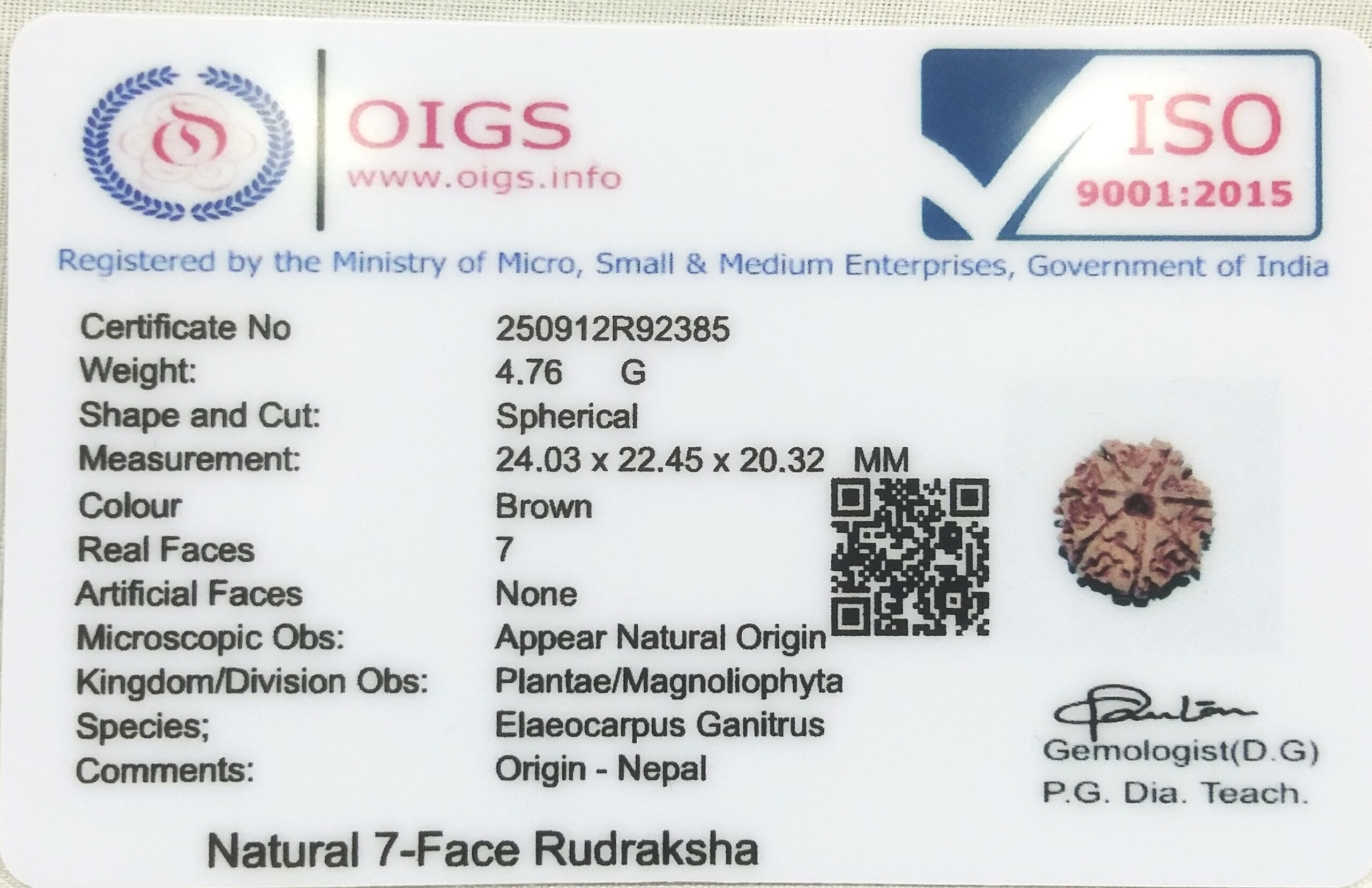 Product Name : Rare Collector 7 Mukhi Rudraksha with Complete 7 Seeds – 24.03 mm – Nepal