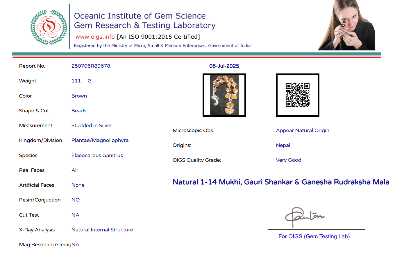 Siddha Combination of 1 Mukhi Till 14 Mukhi Rudraksha With Gauri Shankar and Ganesh Rudraksha