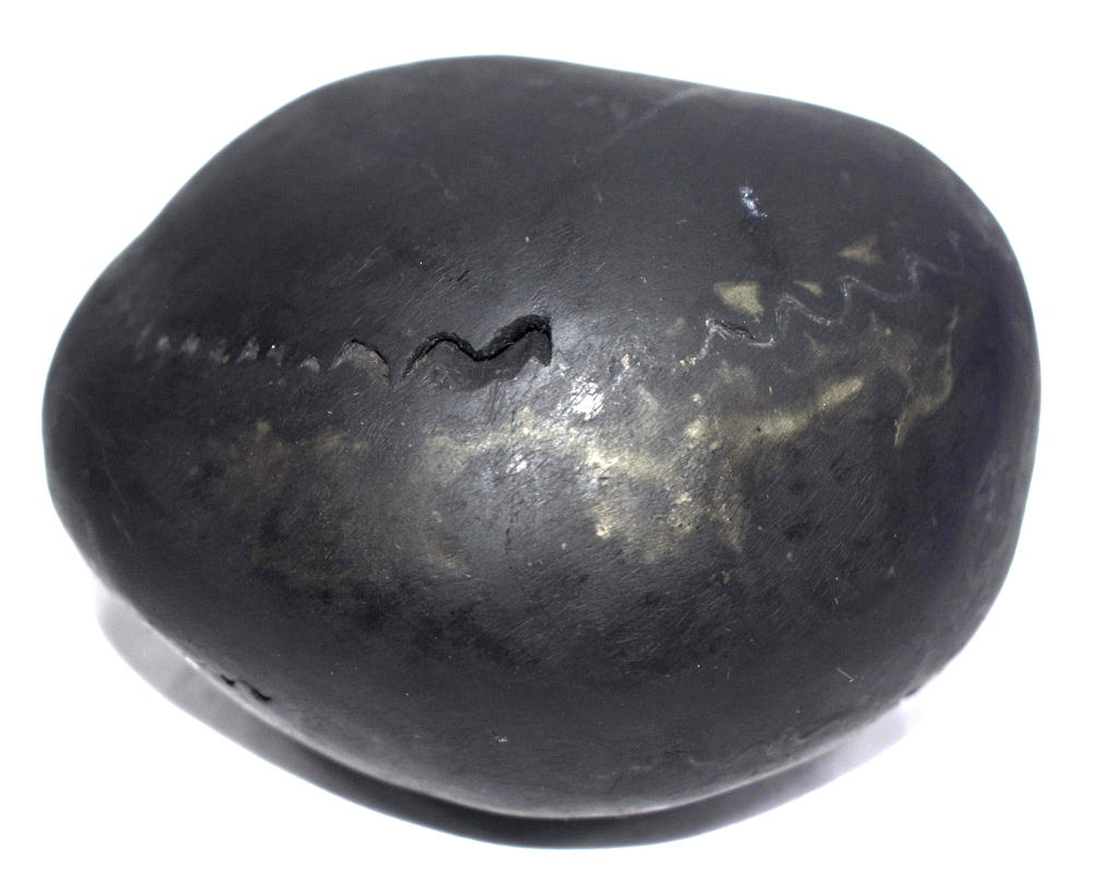 Kali (the Eternal Night), The first Mahavidya is Kali. Seated on a corpse, with long tongue protruding out, greatly terrifying, laughing loudly, with fearful fangs, four arms holding a cleaver, a skull, and giving the mudras bestowing boons and dispelling fear, wearing a garland of skulls, her tongue rolling wildly, completely naked (digambara – clad in the directions), with just a garland of demon-hands round her waist, with heaped locks of a black cascade of hair. Thus one should meditate on Kali, dwelling in the centre of the cremation ground. The Eternal Night – Kali is mentioned as the first amongst the Mahavidyas. Black as the night (ratri) she has a terrible and horrific appearance. The word ‘ratri’ means “to give,” and is taken to mean “the giver” of bliss, of peace of happiness. Chamunda Ma Kali blesses the worshipper like his son or daughter. Chamunda Roopa is for extreme protection against occult, Black magic and jealousy.The Kali Shaligram Shila bestows the devotee with eight supernatural powers. This Maha Vidya represents Krishna as per the Tondla Tantra and rules the planet Saturn. The Shila protects the devotee from natural clamity also and protects the devotee against sudden accidents and thefts. Ma Kali fulfills all wishes of the devotee and She very easily become happy on the devotion of the worshipper and blesses him all worldly happiness, peace of mind and extreme protection. This Shila bestows the devotee with immense upliftment in the business front due it Her ferocious appearance and nature of eliminating the enemies. As per Skanda Purana Chamunda Ma Kali is the first Maha Vidya. The Shaligram Shila is one of the rarest Shila among all Shaligram Shilas and blesses the worshipper with very long life and extremely good health. The Shila has beautiful impressions of golden tongue protruding out from the mouth as depicted in the Shaligram Shila. The power of this Shilas also described in Skanda Puran is such that the living beings that are in the vicinity of these Shilas upto 123 Km diameter too get the benefits of these Shilas without even worshipping them. This Shaligram Shila bestows the devotee with very strong intuition and makes all six senses of the devotee to work with perfection. The worshipper can clearly see the future things happening. This Shila is exceptionally good for the meditation. This Shila are very cold to touch, full of positive energy and tremendous power, extremely protective in nature, blesses the devotee with extremely peaceful environment, provides immense worldly comfort and takes the devotee to spiritual enlightenment and transcendence.