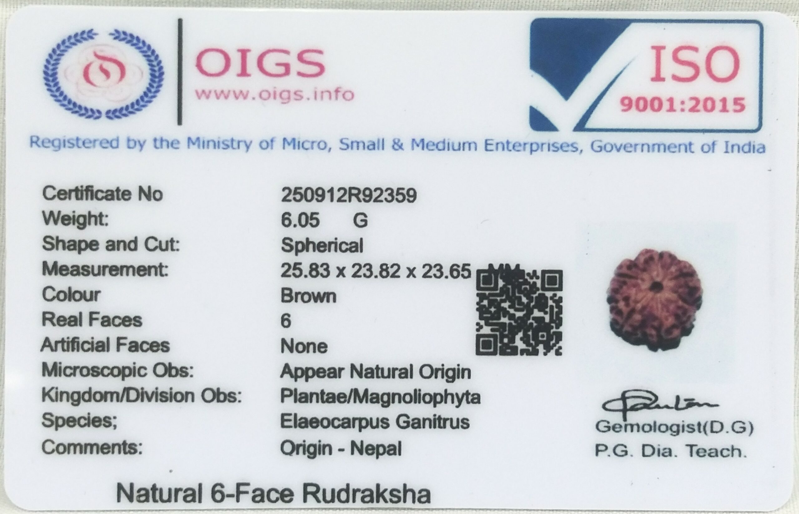 Product Name : Super Collector 6 Mukhi Rudraksha with 6 Complete Seeds – 25.83 mm – Nepal