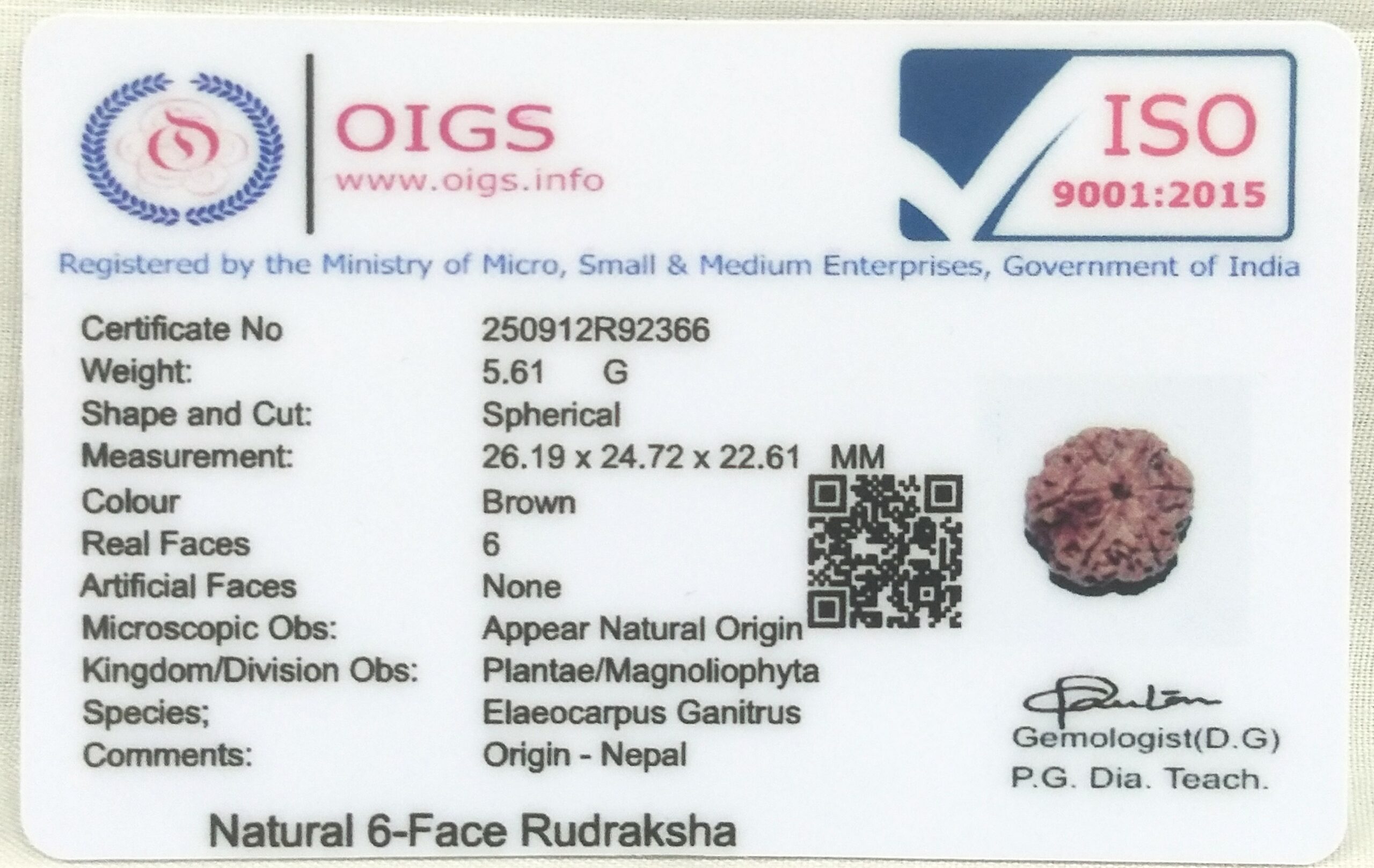 Product Name : Super Collector 6 Mukhi Rudraksha with 6 Complete Seeds – 26.19 mm – Nepal
