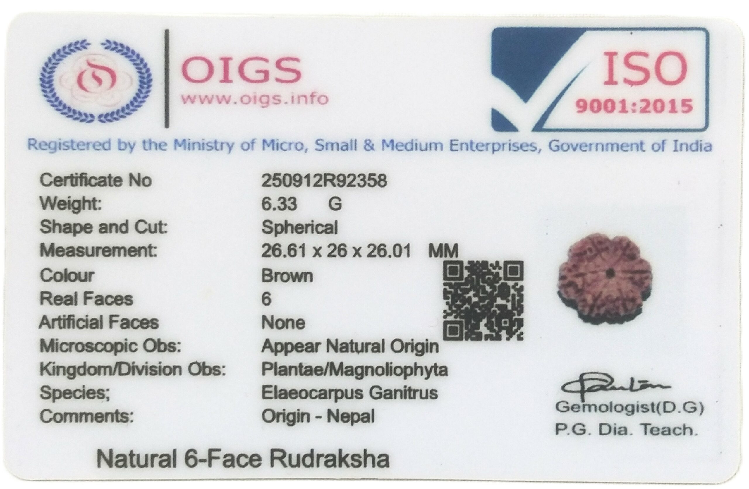 Super Collector 6 Mukhi Rudraksha with 6 Complete Seeds – 26.61 mm – Nepal