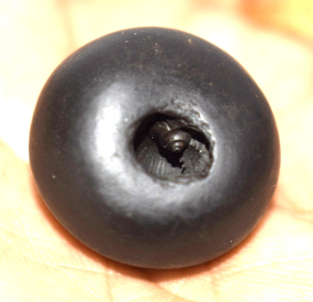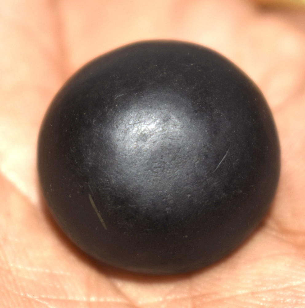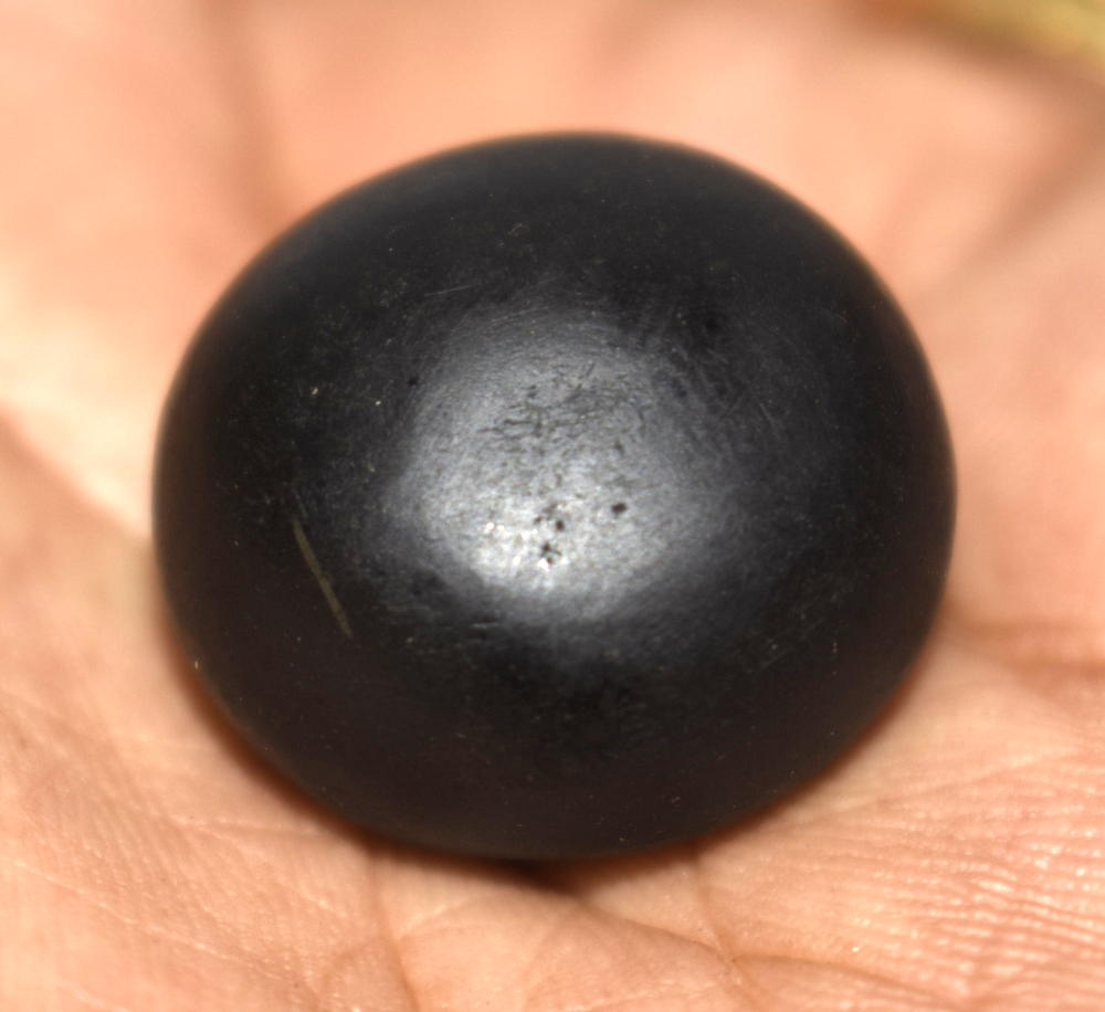 Black color smooth round shape body ,round opening having clear small single chakra .