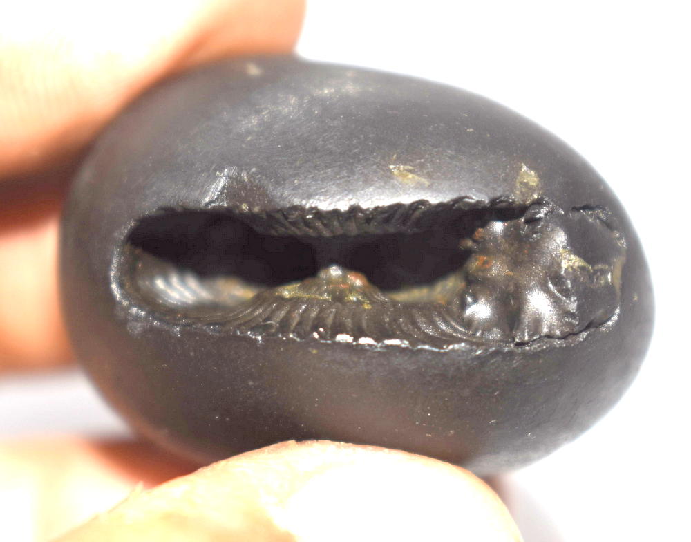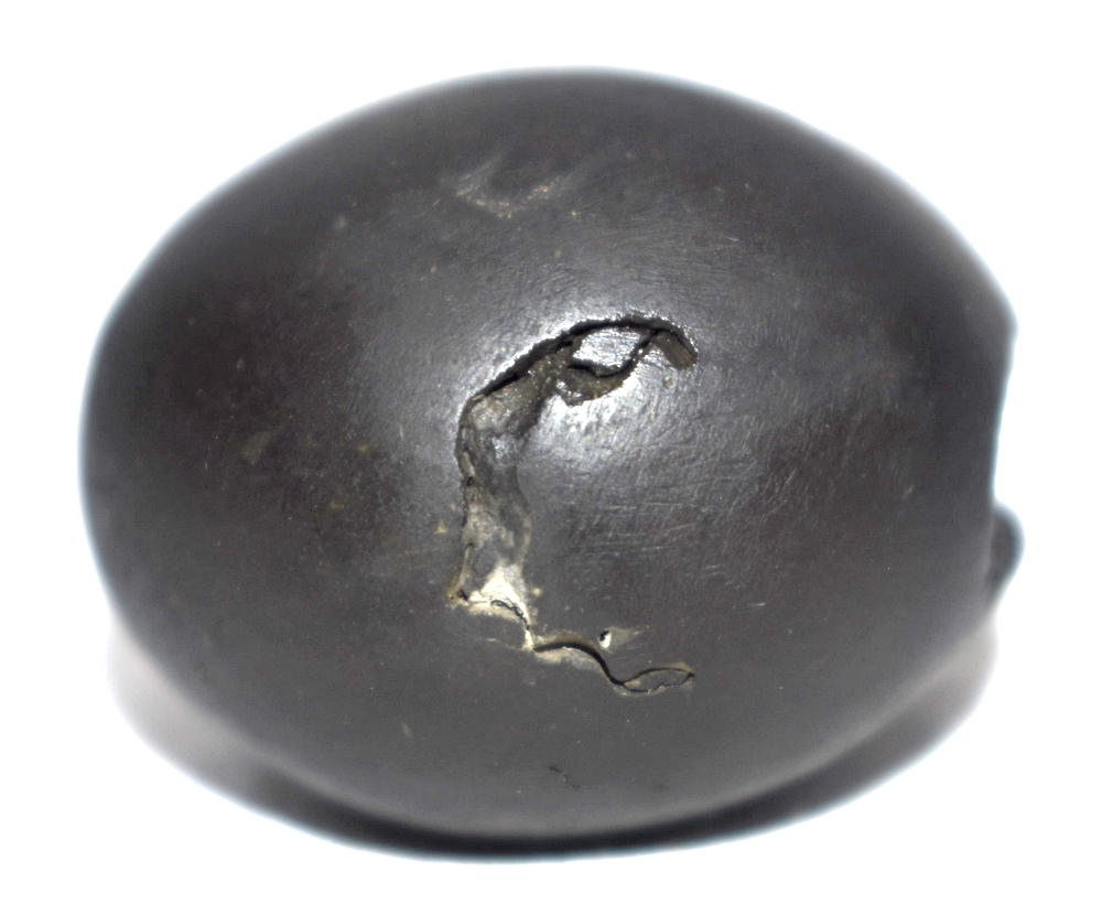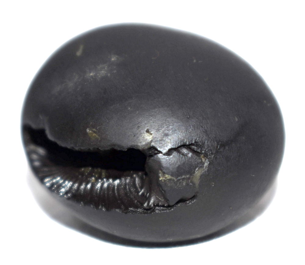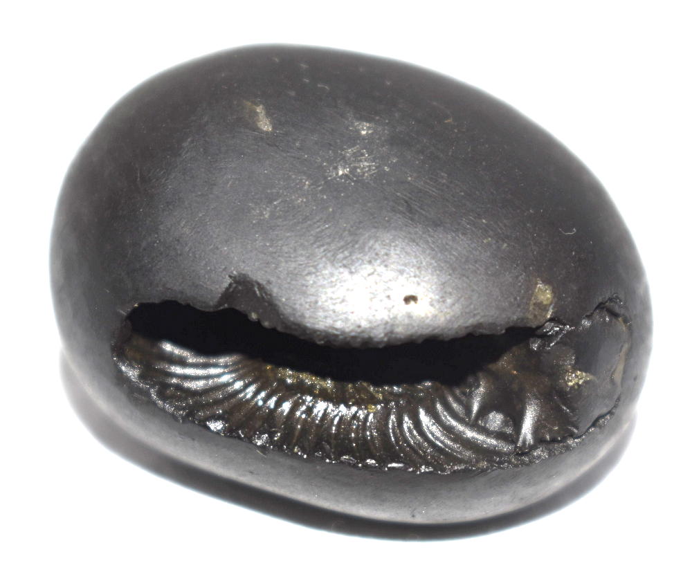 Small Size Black color smooth body , single opening with two clear chakras , mark of kundala , mark of fangs , mark of white color curd dots and golden spots .