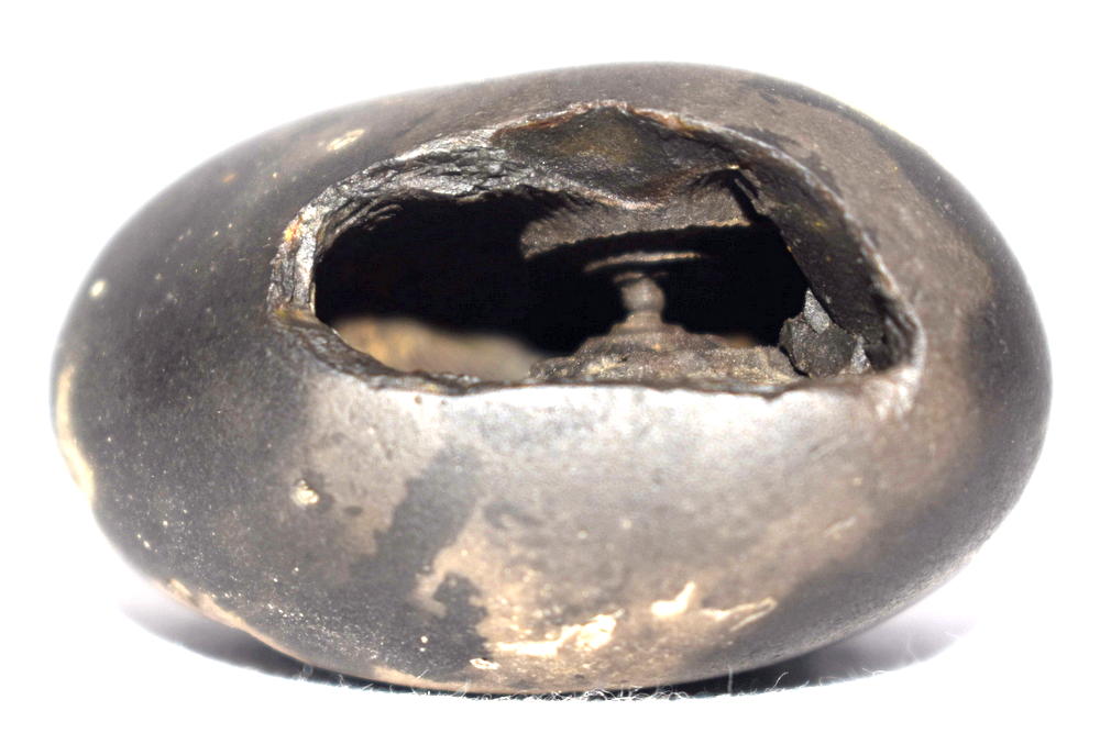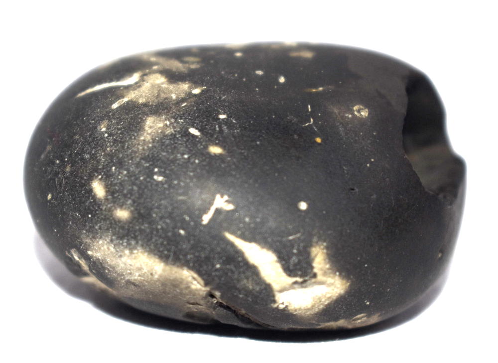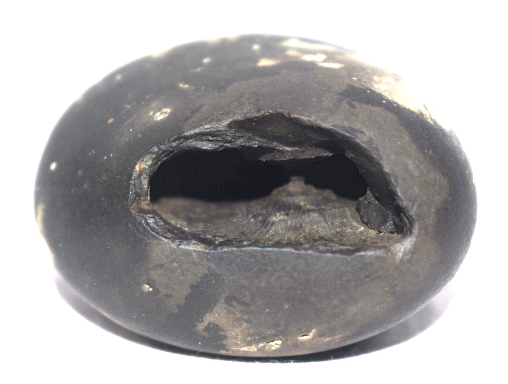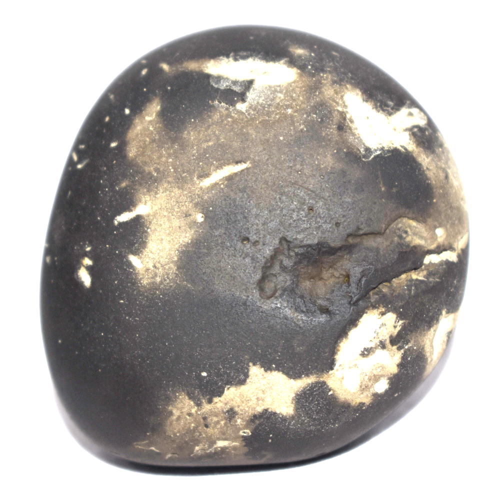 Shaligram having  left side chakra; mix of white color;   1 opening – 2 circular marks is known as ” Shuddha Vasudeva Shaligram”