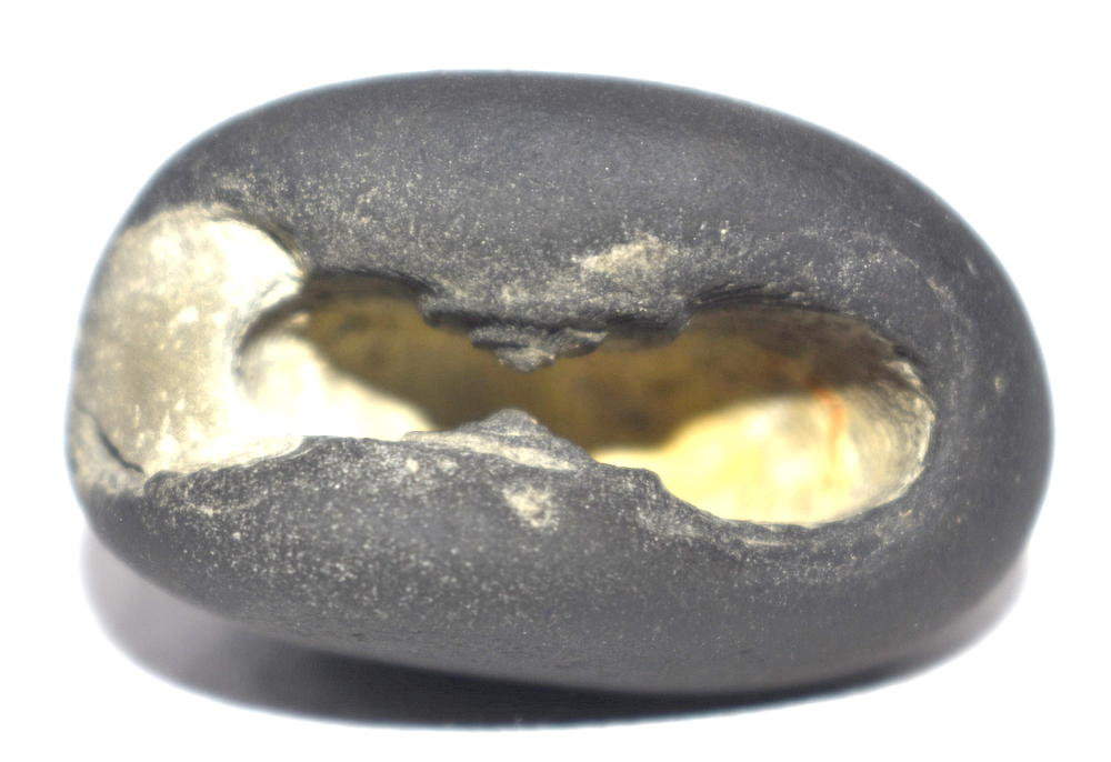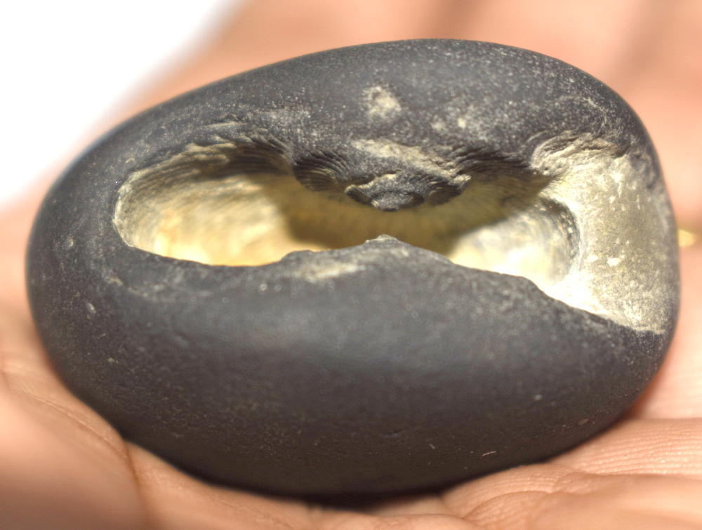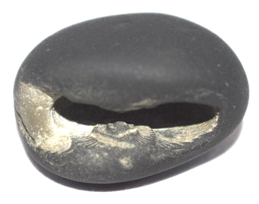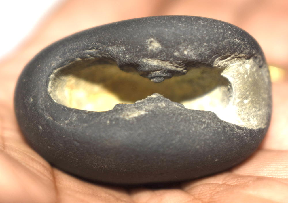 Shaligram having  two equal chakras at the entrance; charming to look at; white color; 1 opening – 2 chakras is known as ” DvarkaChakra Vasudeva Shaligram”