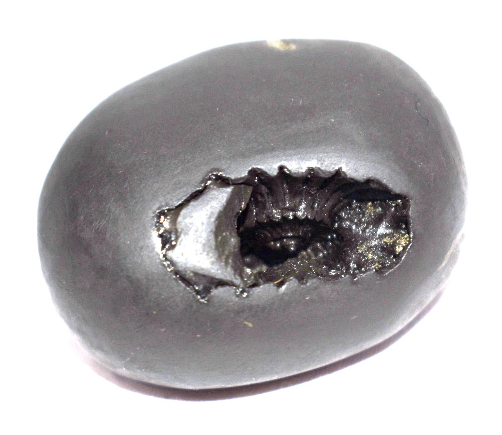 Shaligram having bluish; elongated chakra at the entrance; lines like hooded serpent; 1 opening – 2 circular marks is known as “Nilotpala Vasudeva Shaligram”