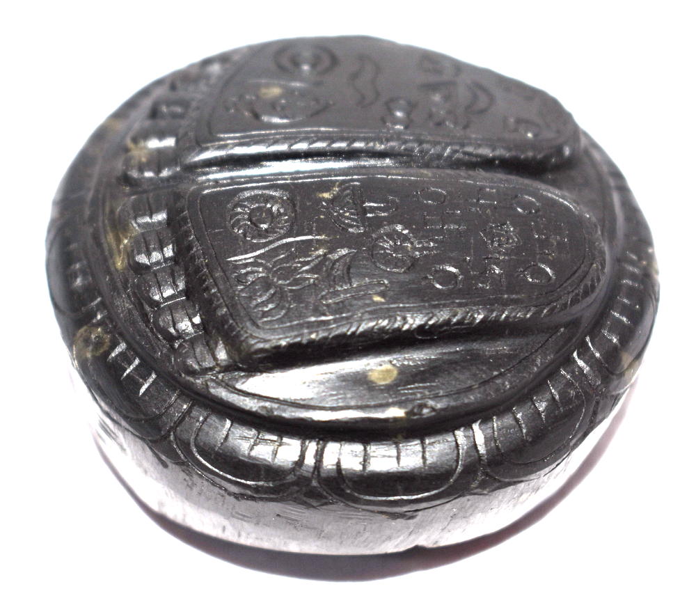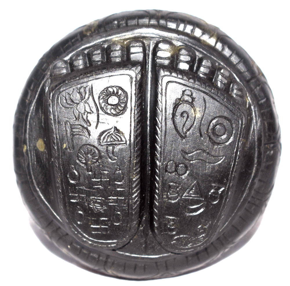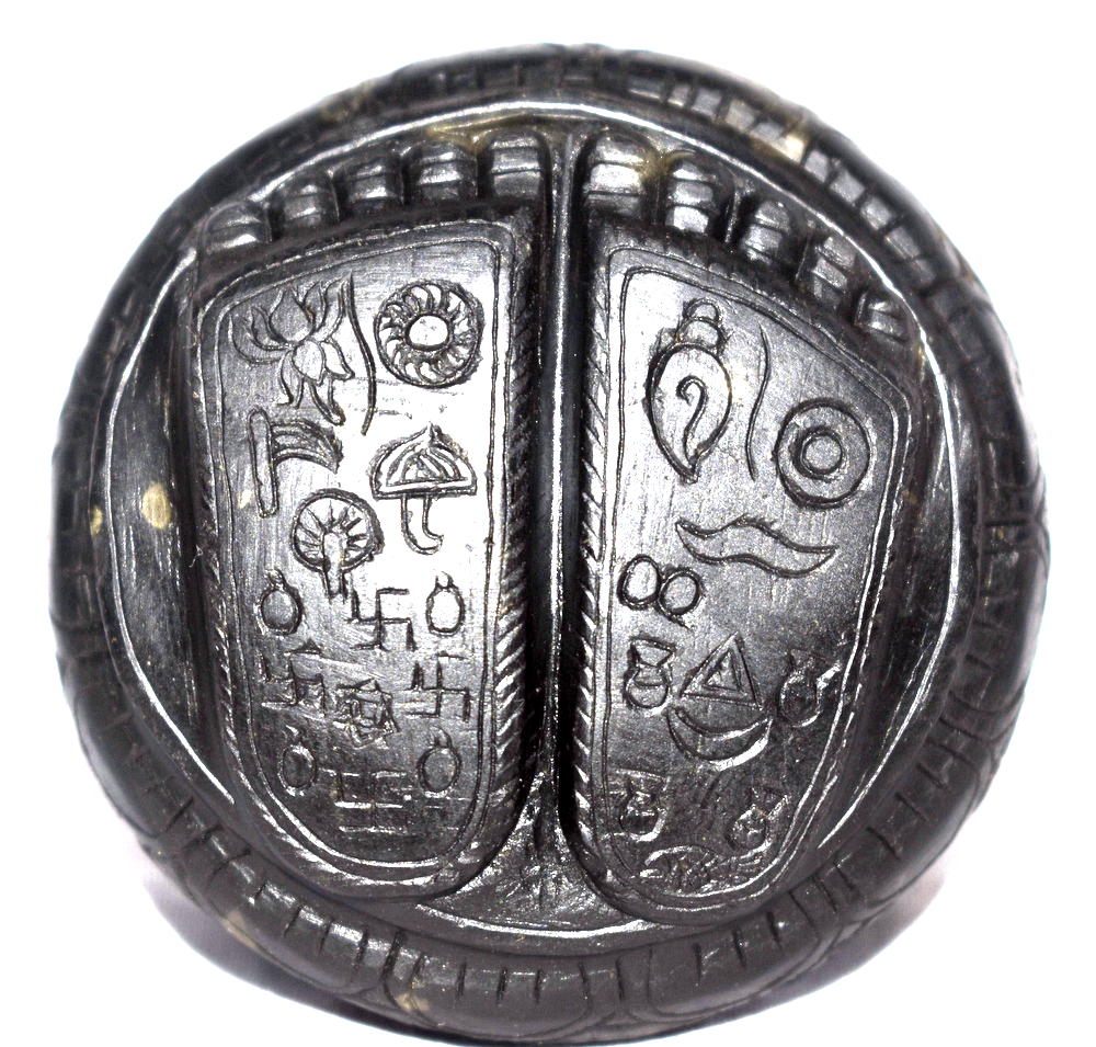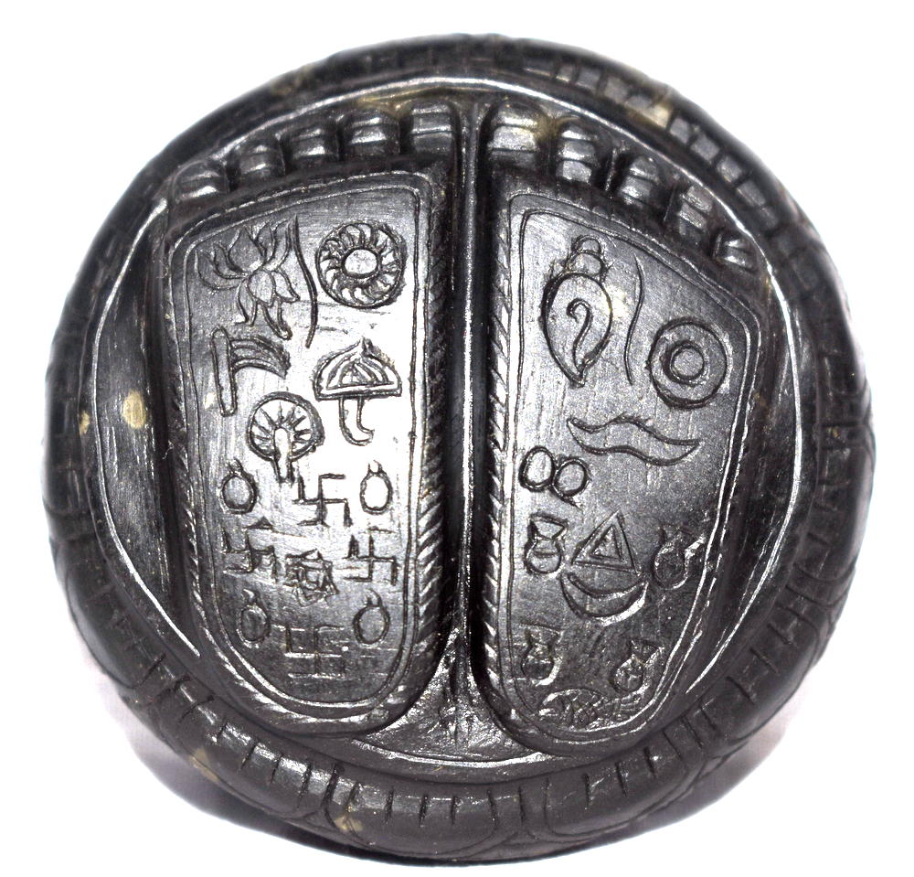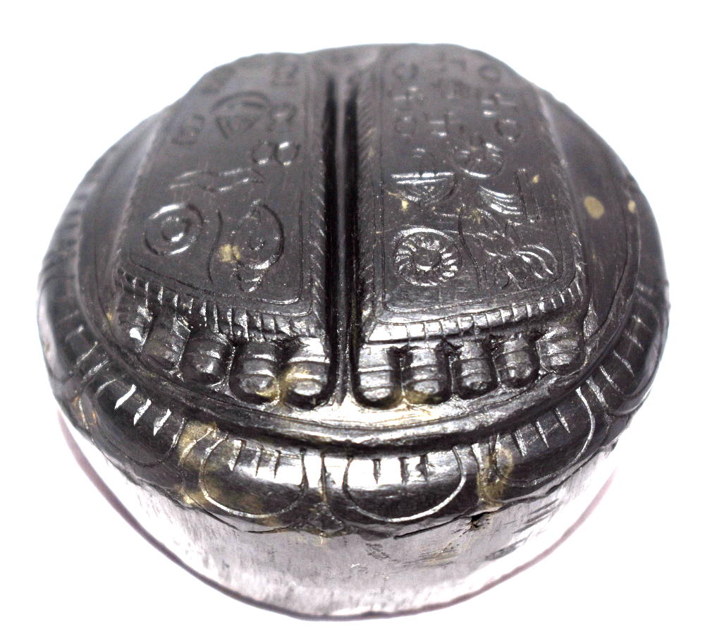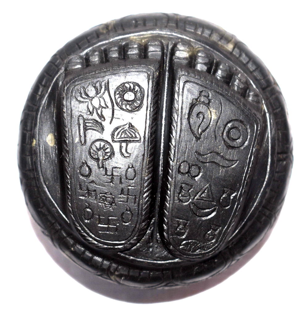 Lord Vishnu Charan Paduka Symbolizes the Foot Prints of Lord Vishnu , with all the auspicious symbols carved on natural Golden shaligram ,